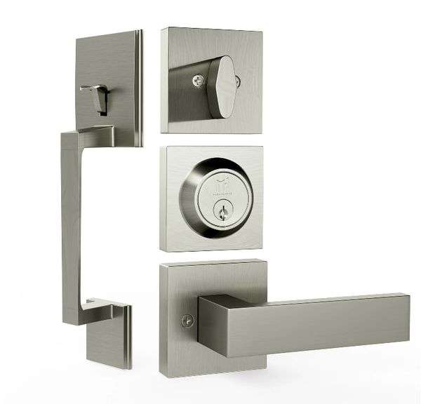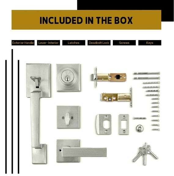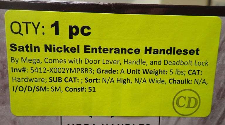 Satin Nickel Entrance Handleset. By Mega, Comes with Door Lever, Handle, and Deadbolt Lock, Grade: A Weight: 5. Sold by: Piece. Sold as: Price x Quantity.