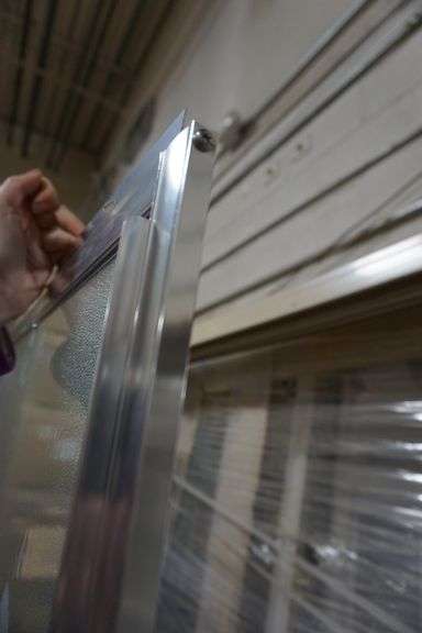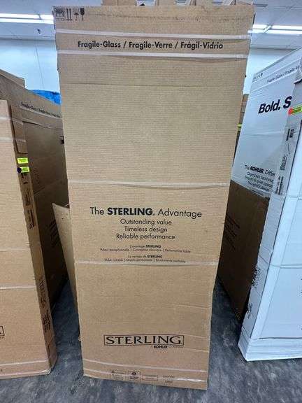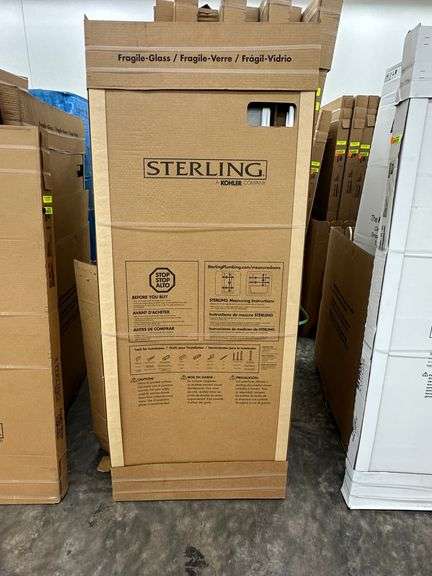 Kohler Deluxe Framed Sliding Shower Door. Made by Sterling, 70"x46 1/2" With 1/8" thick Pebbled glass, silver frame finish. Model #5970-46S. Grade: 1st Quality Weight: x. Sold by: Door. Sold as: Price x Quantity.