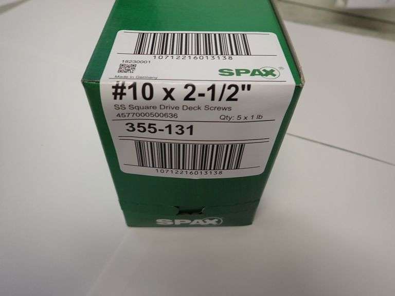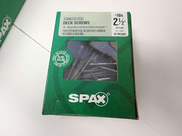 Stainless Steel Exterior Deck Screws #10 x 2 1/2". Square Drive, Flat Head, Double Threadlocks, 5 Boxes of 84 Pieces per Case, Grade: A Weight: 6. Sold by: Case. Sold as: Price x Quantity.