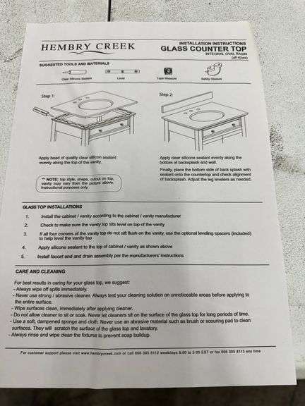 Hembry Creek 25" Tempered Glass Vanity Top. By Hembry Creek, White Lacquered Finished Glass Vanity Top, 22"Dx25"Wx6"H Grade: A Weight: 43. Sold by: Piece. Sold as: Price x Quantity.