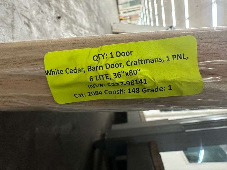 White Cedar Barn Door Craftsman's 1 PNL 6 Lite 36"x80". Grade: 1 Weight: . Sold by: Door. Sold as: Price x Quantity.