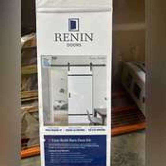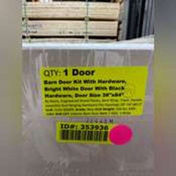 Barn Door Kit With Hardware, Bright White Door With Black Hardware, Door Size 36"x84". By Renin, Engineered Wood Planks, Bent Strap, Track, Handle, Assembly And Hanging Hardware Fits Openings 28"-34"x80.5" Grade: New Weight: 106. Sold by: Door. Sold as: Price x Quantity.
