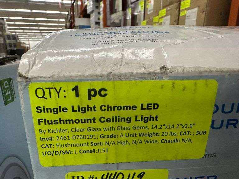 Single Light Chrome LED Flushmount Ceiling Light. By: Kichler, Clear Glass with Glass Gems, 14.2"x14.2"x2.9", Grade: A Weight: 20. Sold by: Piece. Sold as: Price x Quantity.