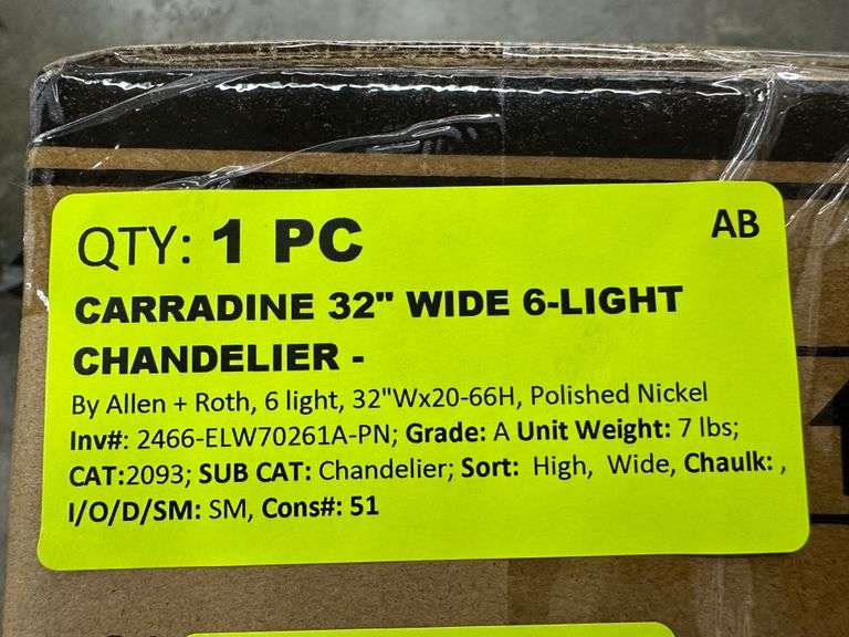 Polished Nickel Farmhouse Dryrated 6-Light Chandelier. By: ELK , 32" Wide, Grade: A Weight: 7. Sold by: Piece. Sold as: Price x Quantity.
