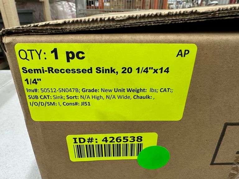 Semi-Recessed Sink 20 1/4" x 14 1/4". Grade: New Weight: x. Sold by: Piece. Sold as: Price x Quantity.