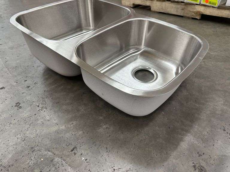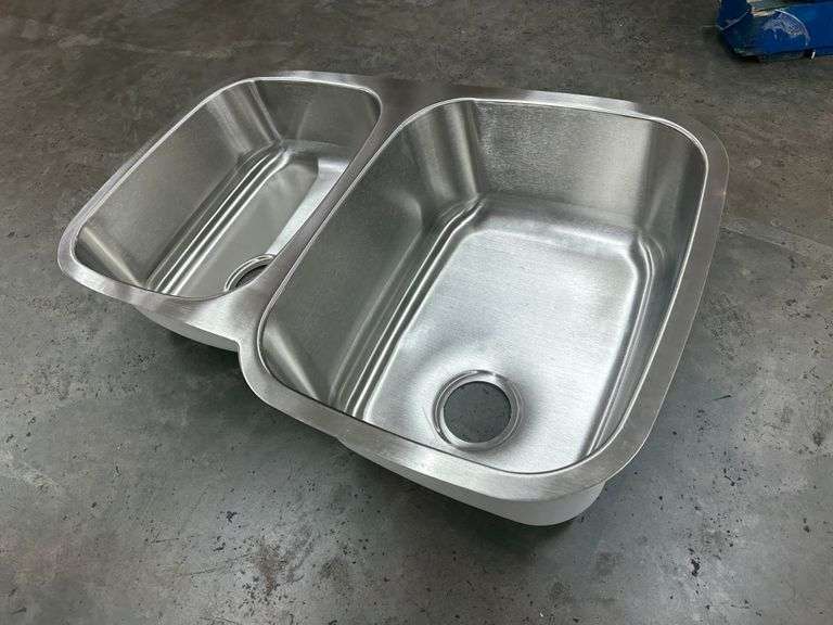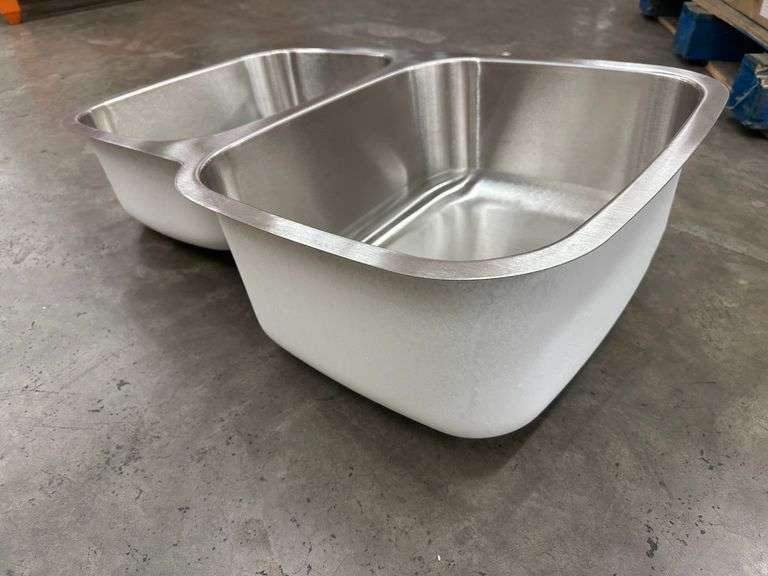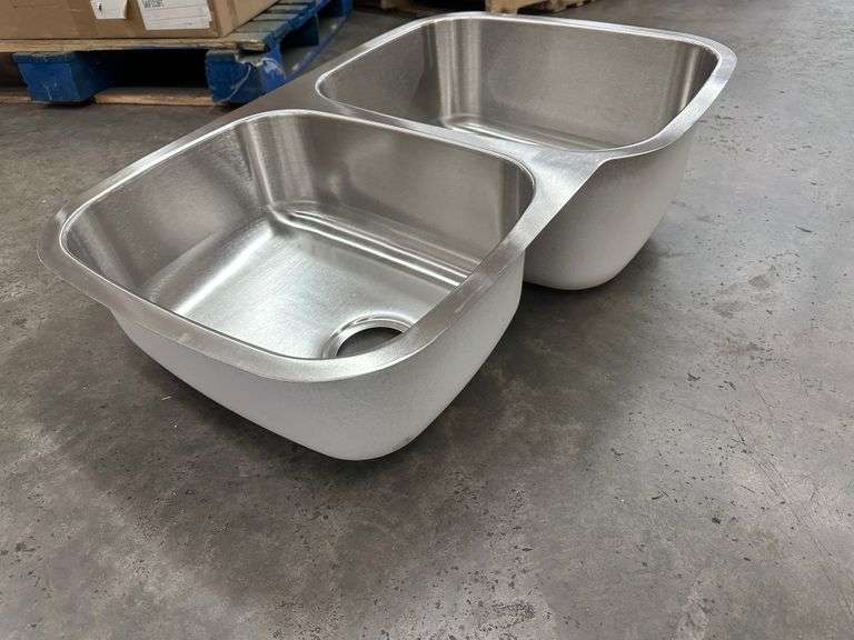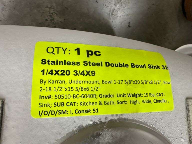Stainless Steel Double Bowl Sink 32 1/4"x20 3/4 x9". By Karran, Undermount, Bowl 1-17 5/8" x 20 5/8"x 8 1/2", Bowl 2-18 1/2" x15 5/8 x6 1/2" Weight: 15. Sold by: Piece. Sold as: Price x Quantity.