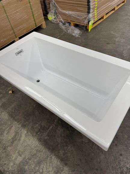 Neptune Munich White Drop-In Bathtub 59"x32"x23". Tub Only, Chrome Drain Included. AFR, Acrylic Surface, High Gloss Finish. 74 Gallon Water Capacity, 18* Back Slant. Actual Dimensions 58 7/8"x31 5/8"x23 1/8". Grade: 1st Quality Weight: x. Sold by: Piece. Sold as: Price x Quantity.
