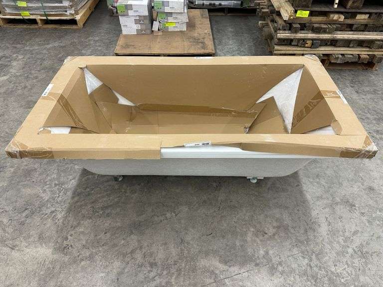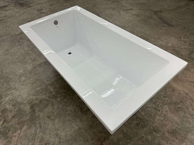 White IMPACT Drop-In Bathtub End Drain Acrylic 66"x34". By Neptune, Adjustable Feet, Contemporary Style, AFR, High Gloss Finish, 71 Gallon Capacity, Actual Dimensions 65 3/4"x34 1/4"x23", Grade:B Weight: x. Sold by: Piece. Sold as: Price x Quantity.