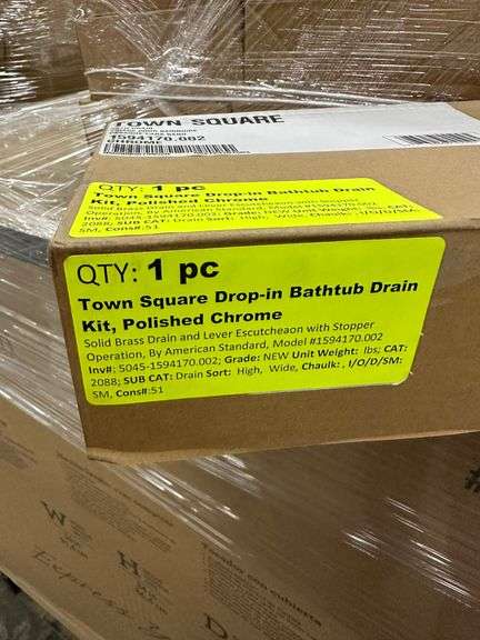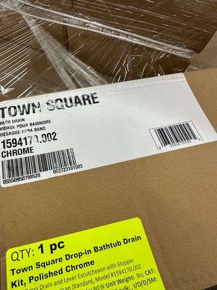 Town Square Drop-In Bathtub Drain Kit, Polished Chrome. Solid Brass Drain and Lever Escutcheon with Stopper Operation, By American Standard, Model #1594170.002, Grade: NEW Weight: x. Sold by: Piece. Sold as: Price x Quantity.