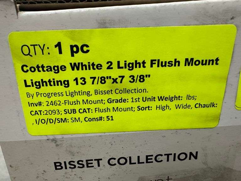 Cottage White 2 Light Flush Mount Lighting 13 7/8"x7 3/8" (2-Pack). By Progress Lighting, Bisset Collection, 2 Pieces, Grade: 1st Weight: x. Sold by: Piece. Sold as: Price x Quantity.