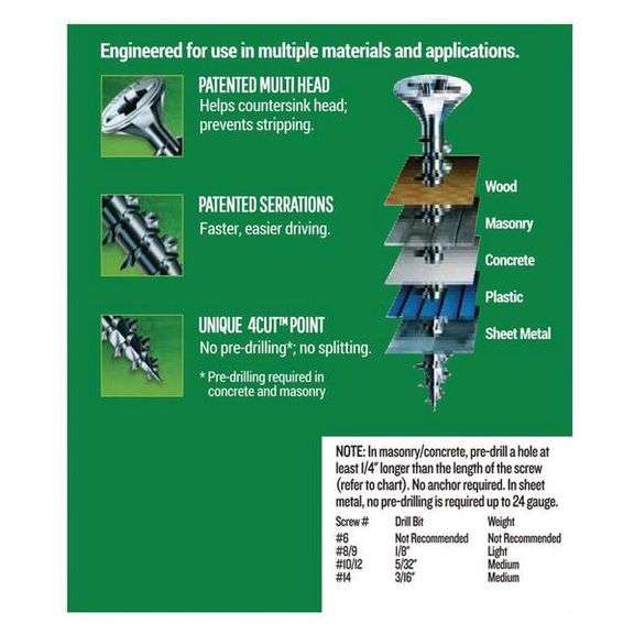 Zinc Interior Multi-Material Screws #14 x 2". Unidrive Flat Head 10 Boxes of 10 Pieces Per Case, Grade: A. Weight: 8. Sold by: Case. Sold as: Price x Quantity.