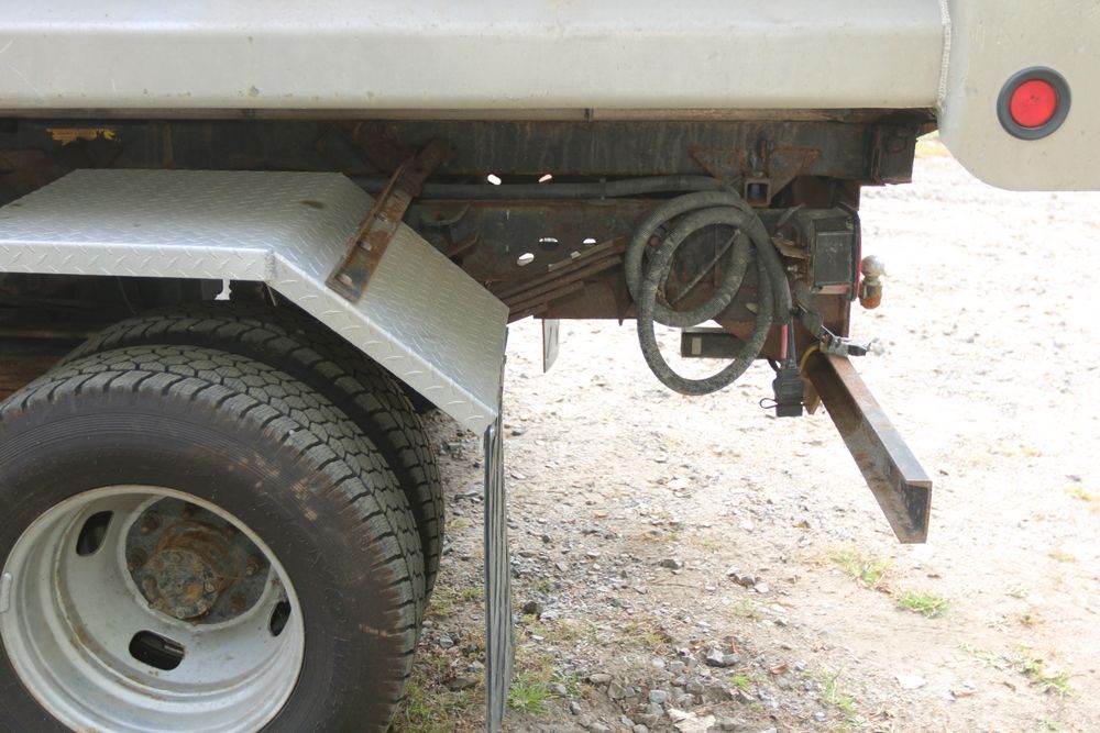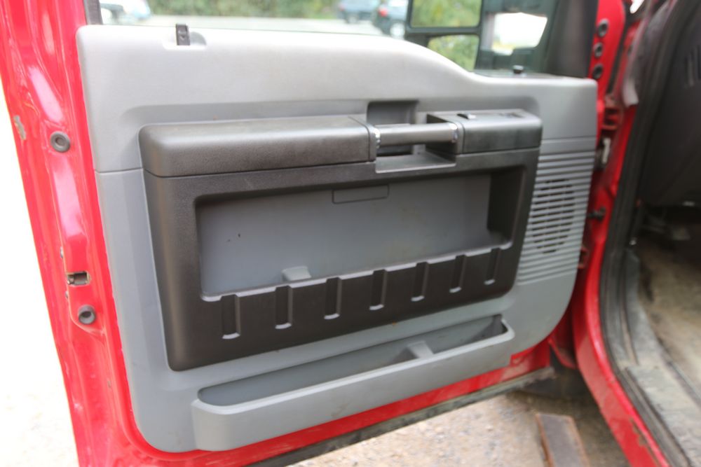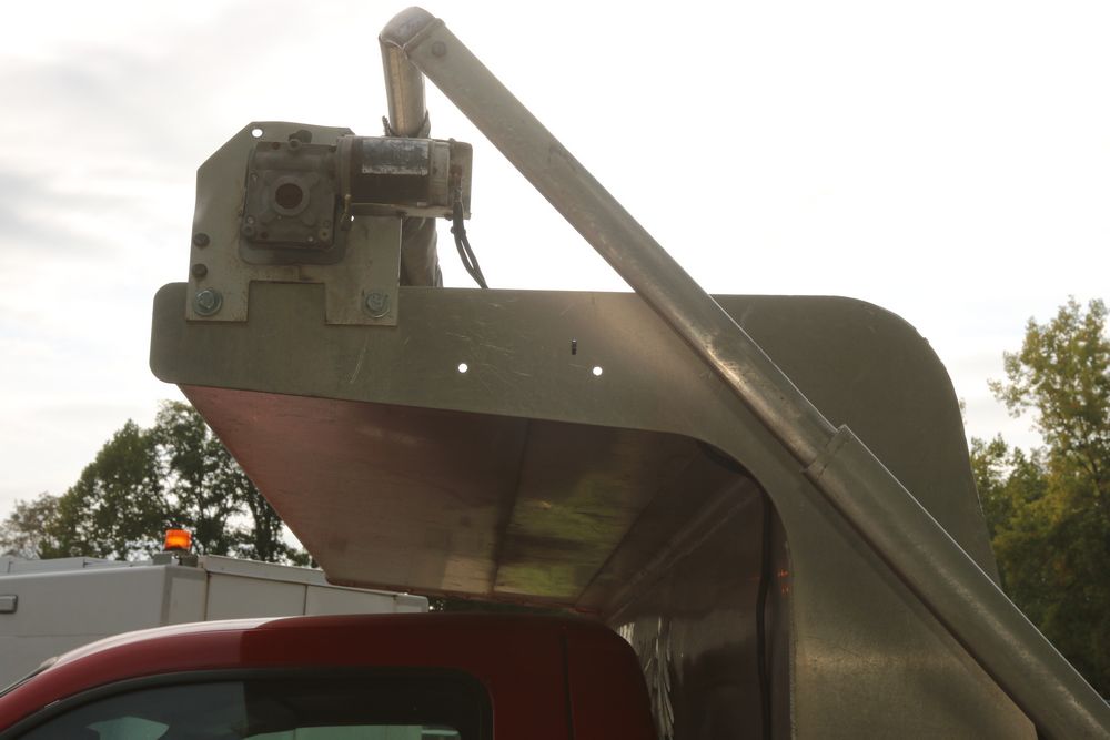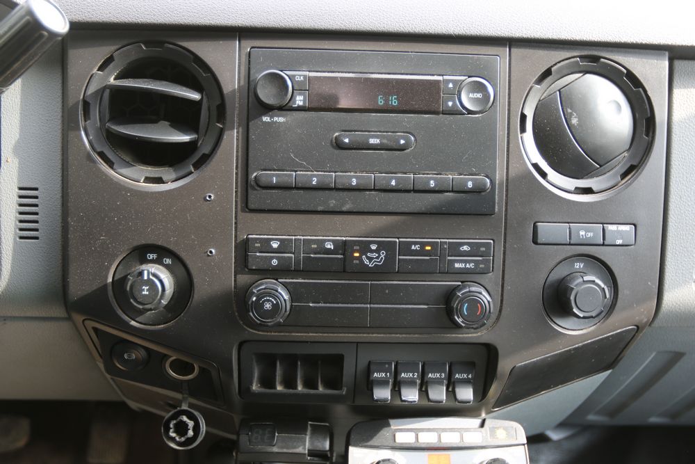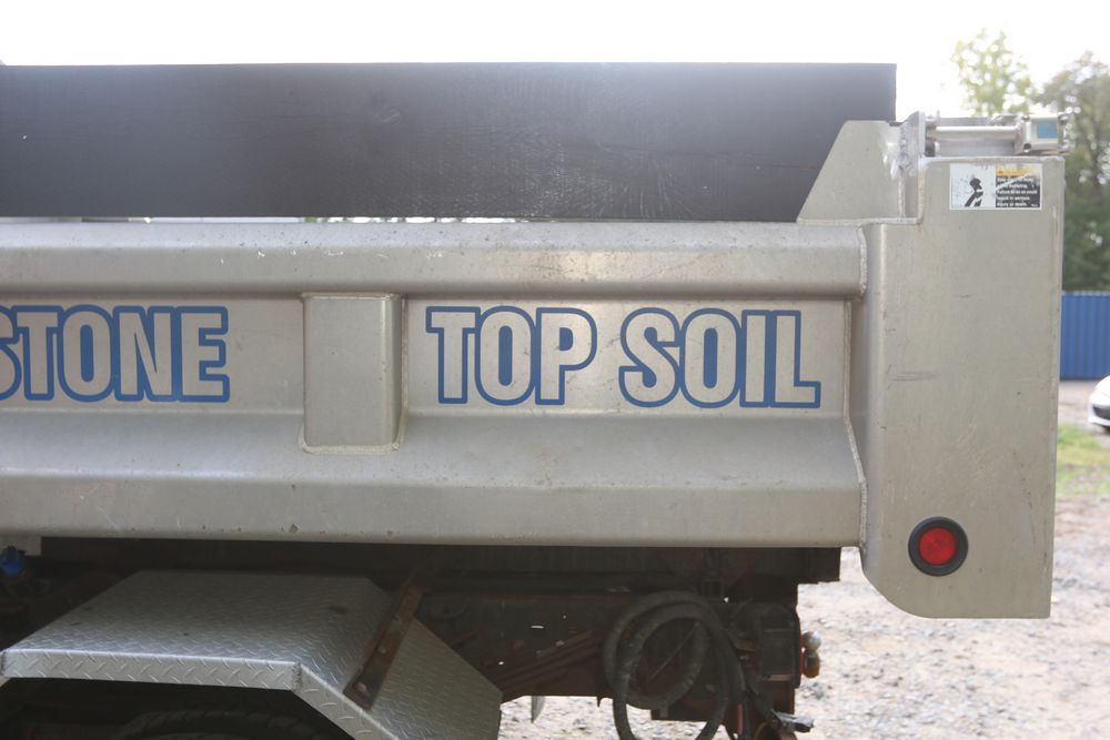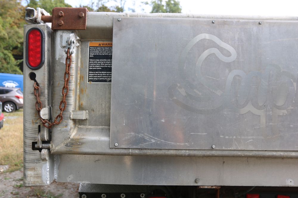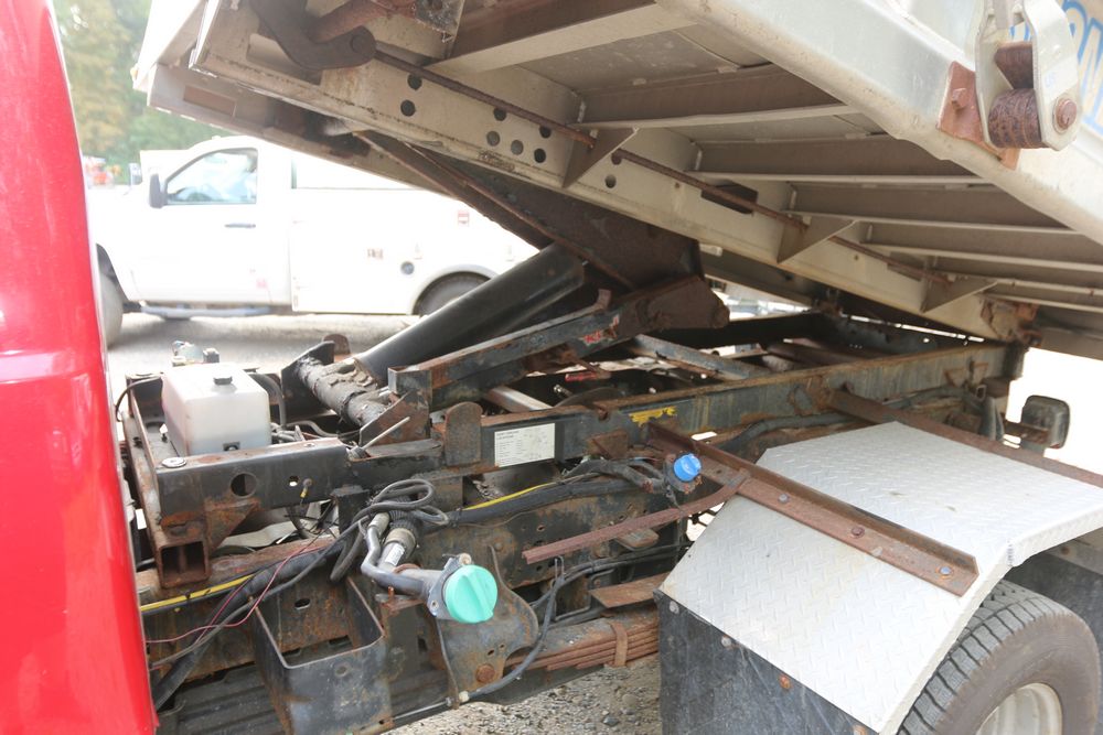 2015 Ford F-350 Super Duty, 6.7L V8 OHV 16V diesel engine and an aluminum dump body labeled for sand, stone, and topsoil. VIN# 1FTRF3BT1FED30045, power windows, AM/FM stereo, AC, auxiliary switches, and a dashboard control system for dump operation. Odometer reading: 137,427 miles. Runs and drives. Title and keys available.