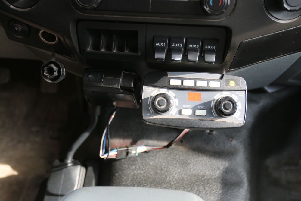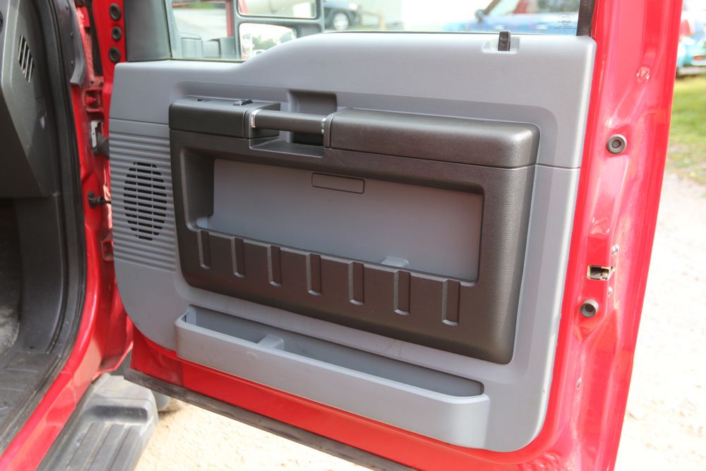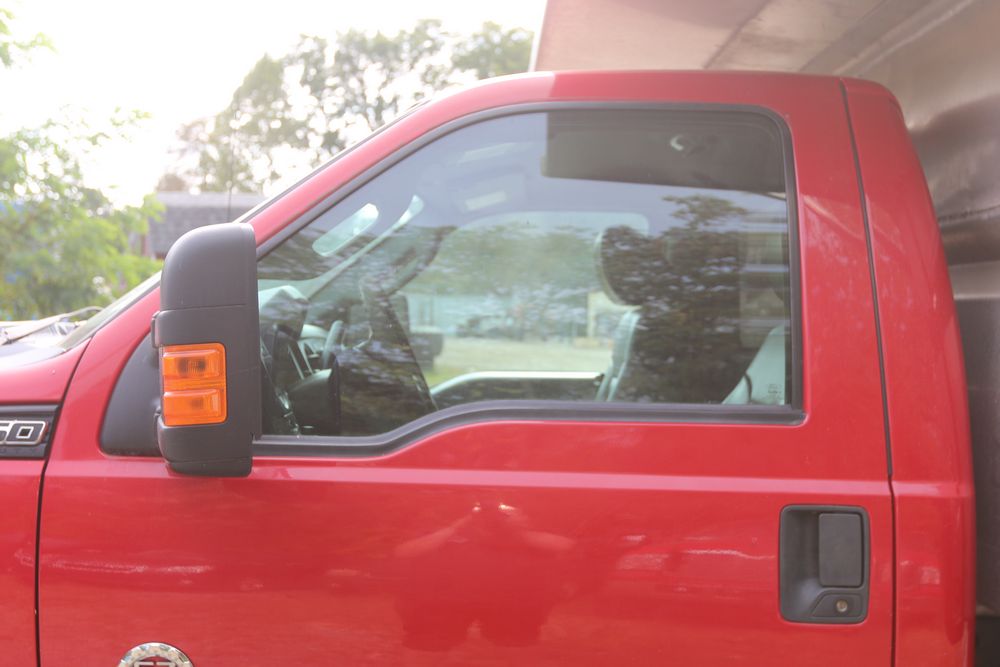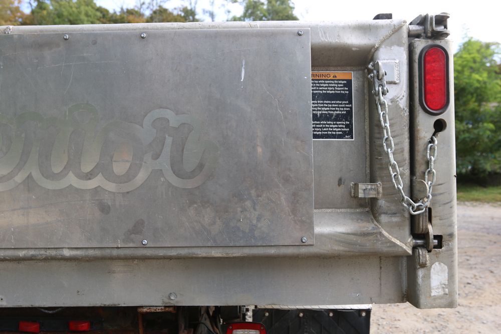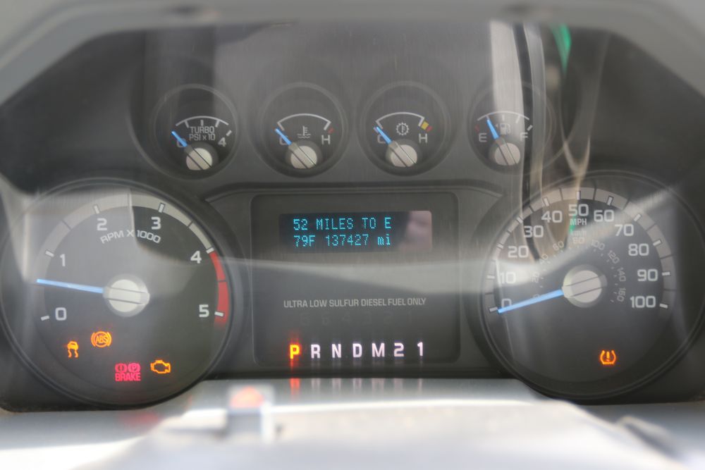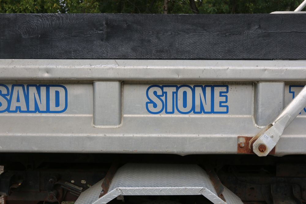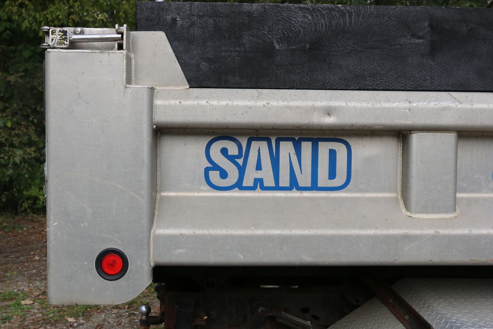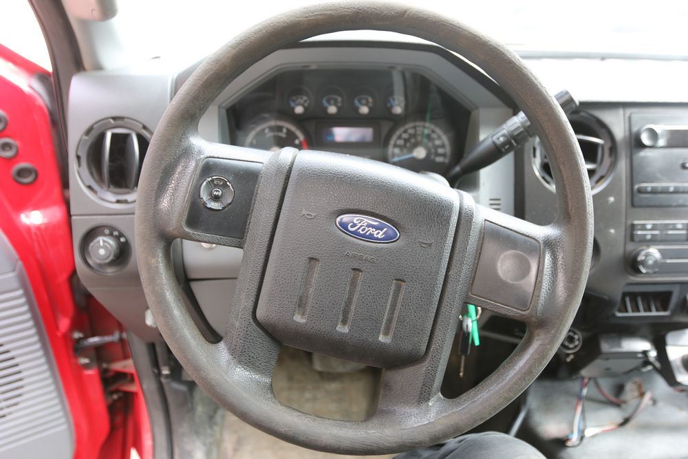 2015 Ford F-350 Super Duty, 6.7L V8 OHV 16V diesel engine and an aluminum dump body labeled for sand, stone, and topsoil. VIN# 1FTRF3BT1FED30045, power windows, AM/FM stereo, AC, auxiliary switches, and a dashboard control system for dump operation. Odometer reading: 137,427 miles. Runs and drives. Title and keys available.