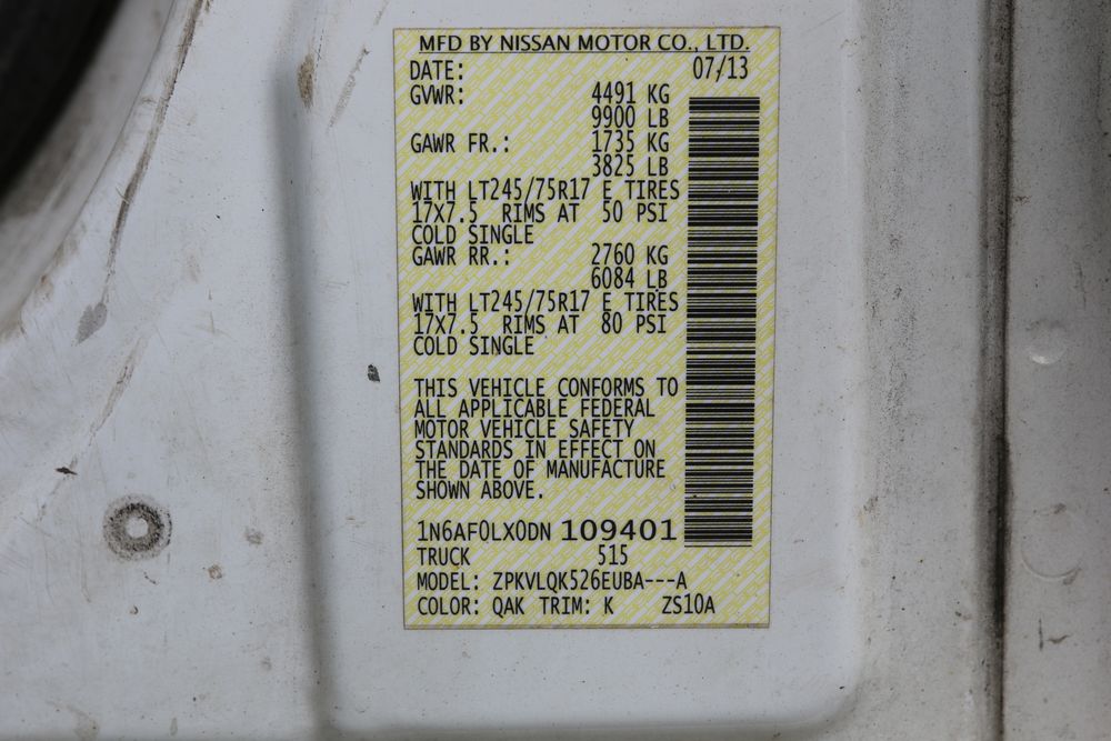 2013 Nissan NV Cargo Van, 5.6L V8 DOHC 32V engine, VIN# 1N6AF0LX0DN109401, odometer reading: 264,266 Miles. Includes steering wheel controls, AM/FM stereo, and power windows. Runs and drives. Title and keys available.