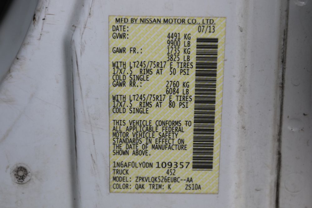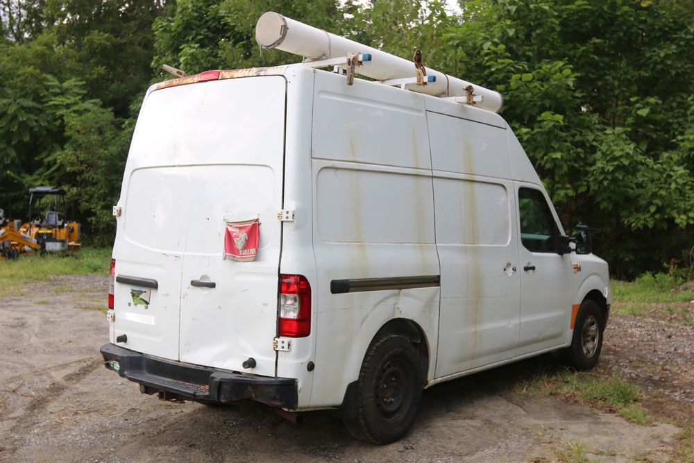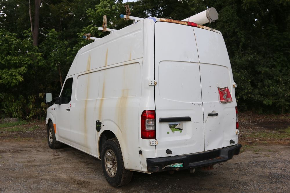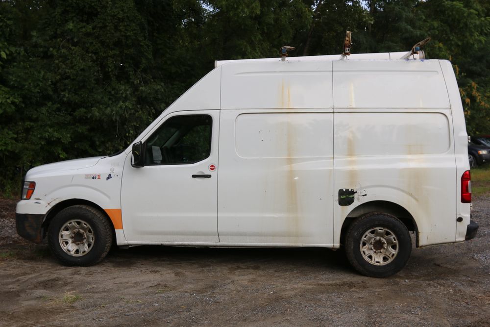 2013 Nissan NV Cargo Van, 5.6L V8 DOHC 32V engine, VIN# 1N6AF0LY0DN109357, odometer reading: 291,367 Miles. Includes steering wheel controls, AM/FM stereo, and power windows. Runs and drives. Title and keys available.