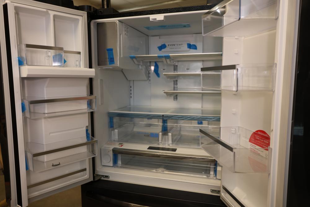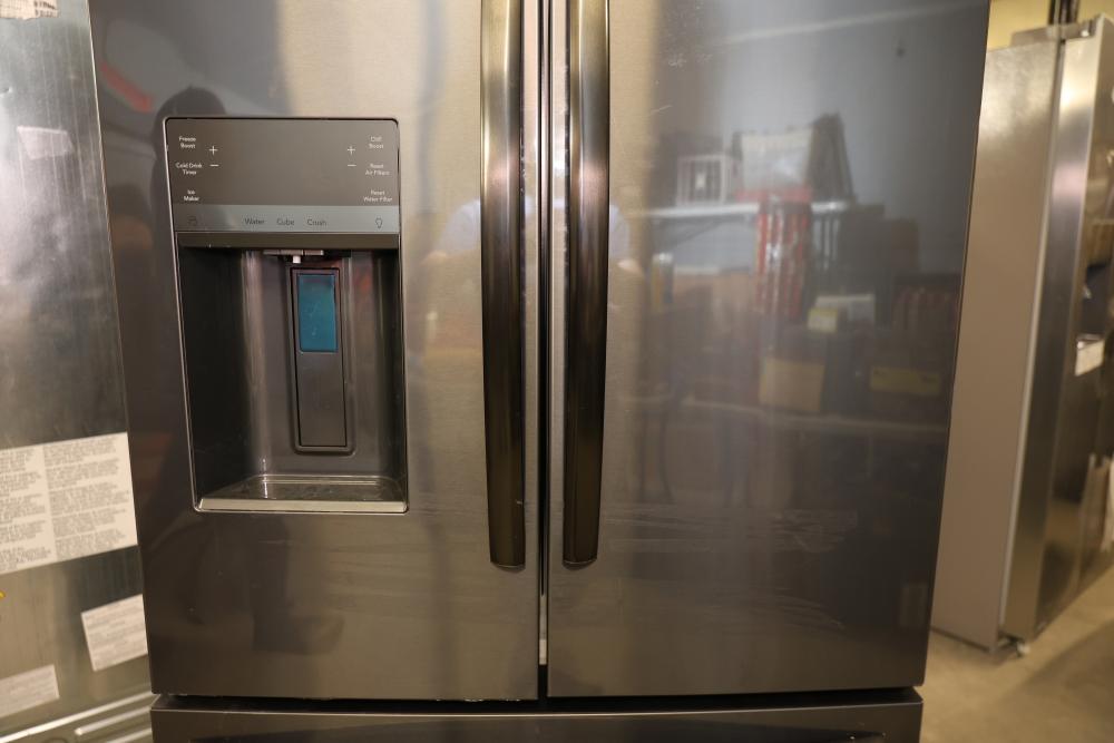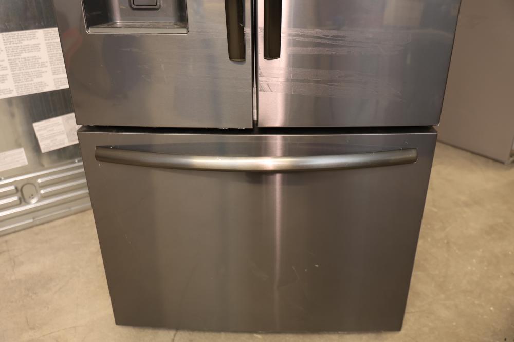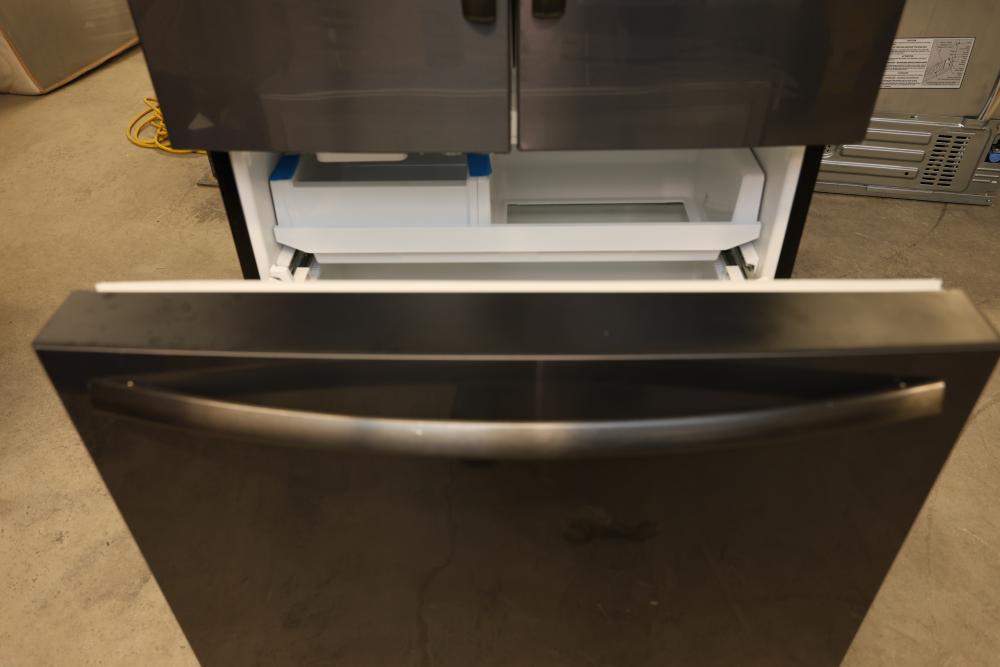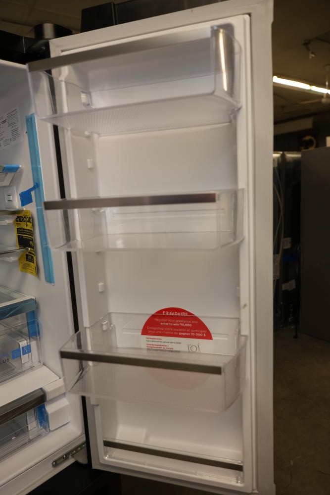 Frigidaire Gallery French Door Refrigerator With Water Dispenser. GRFC2353ADB Features include two French doors with a spacious interior, transparent drawers, adjustable shelves, water dispenser, and a pull-out bottom freezer. 70"H x 36"W x 31"D. Pickup only.