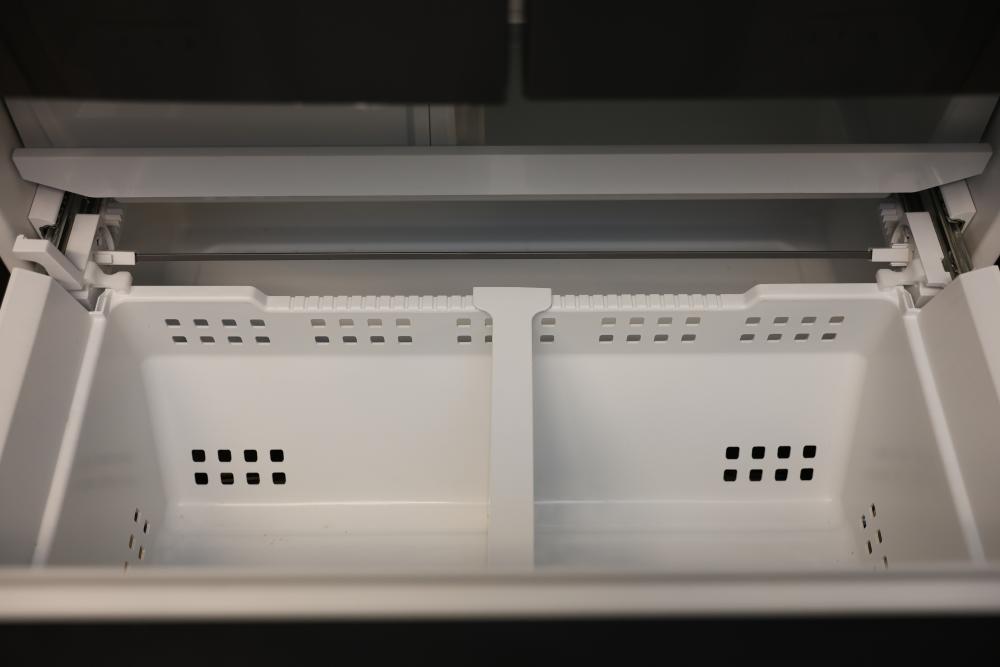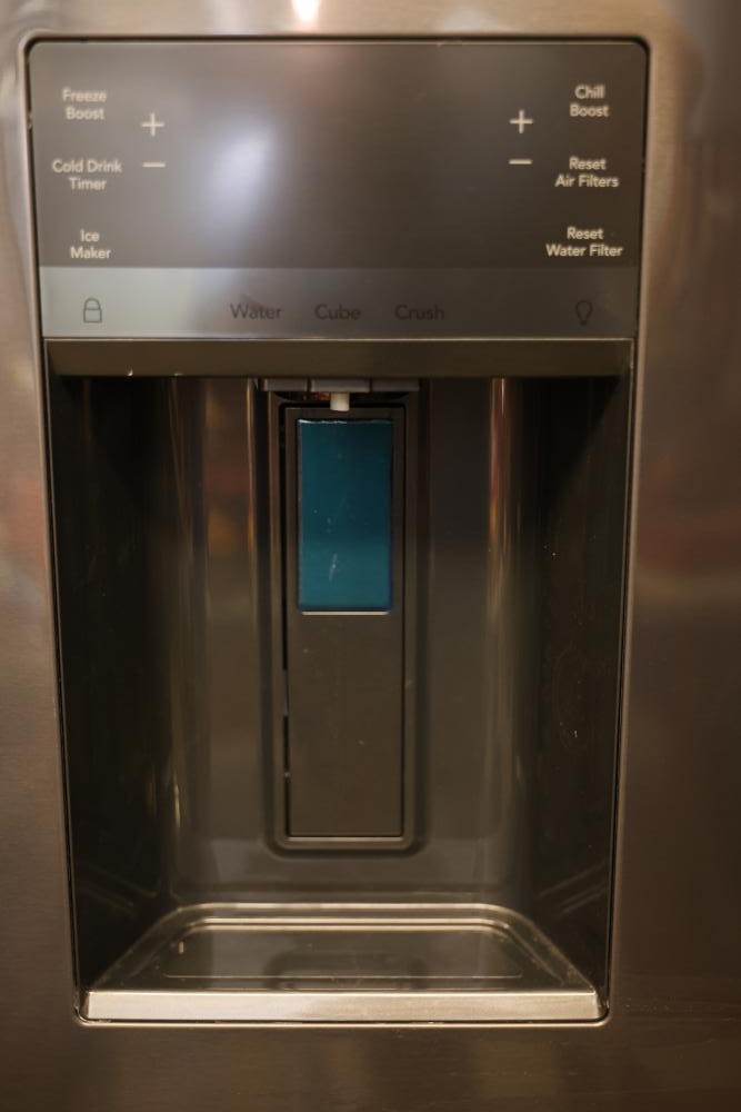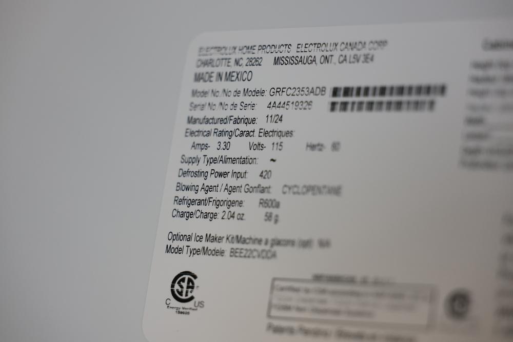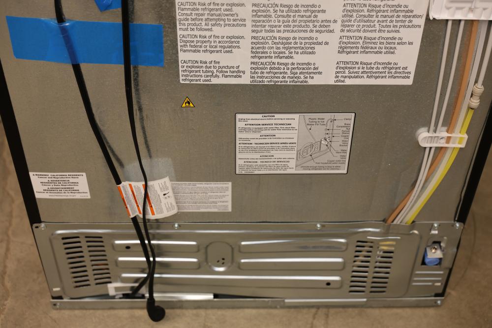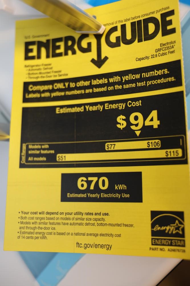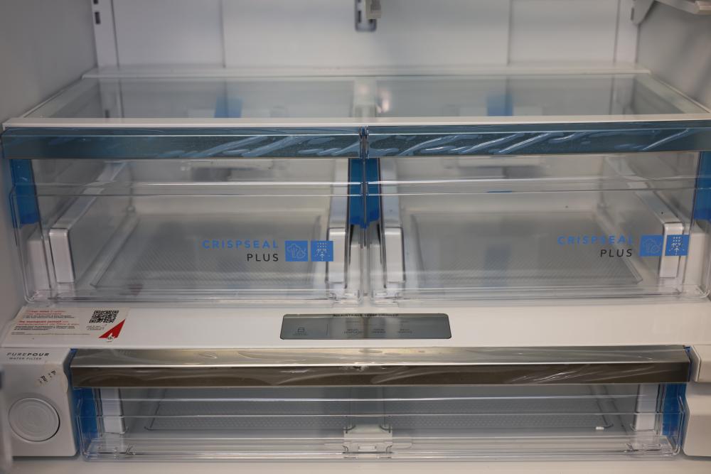 Frigidaire Gallery French Door Refrigerator With Water Dispenser. GRFC2353ADB Features include two French doors with a spacious interior, transparent drawers, adjustable shelves, water dispenser, and a pull-out bottom freezer. 70"H x 36"W x 31"D. Pickup only.