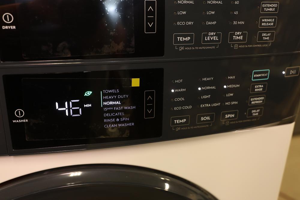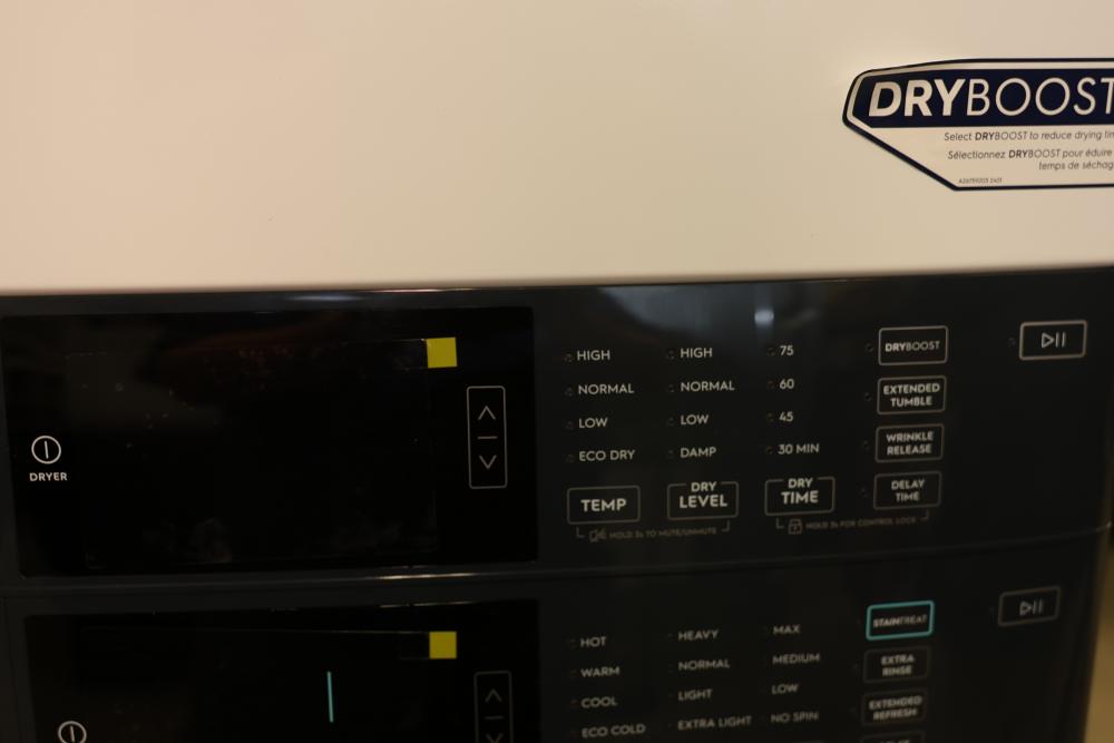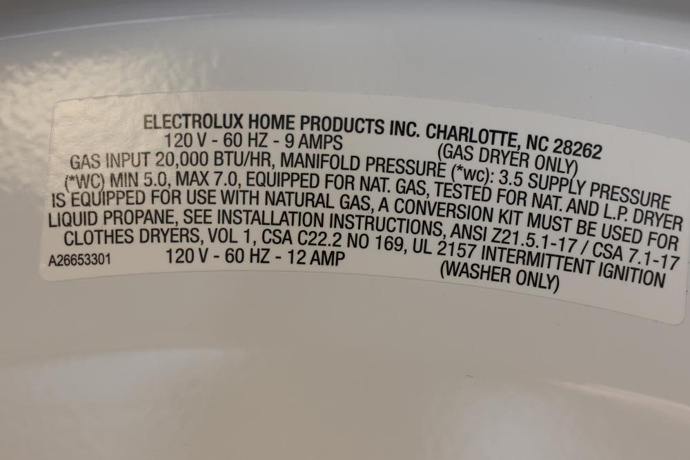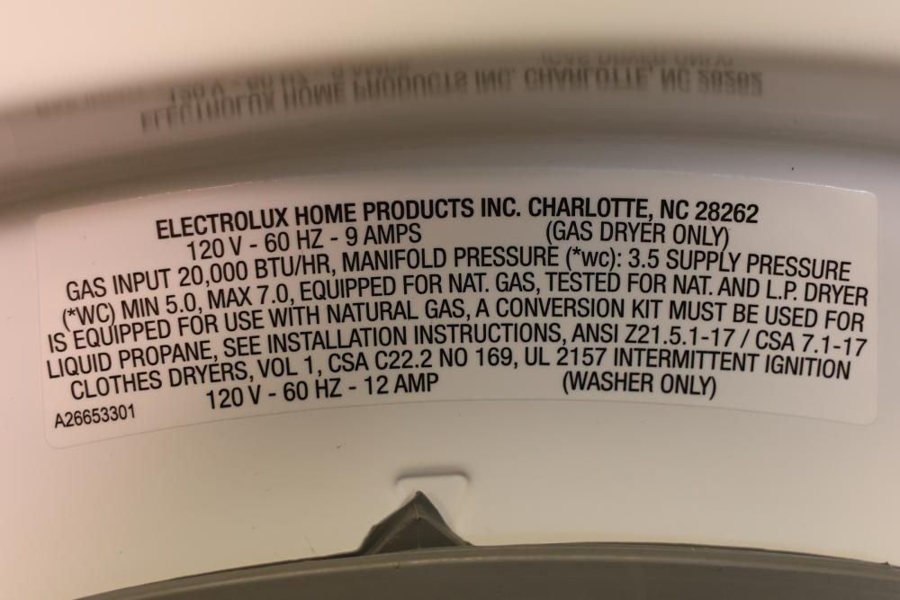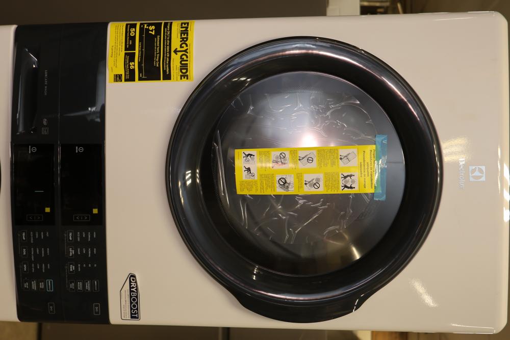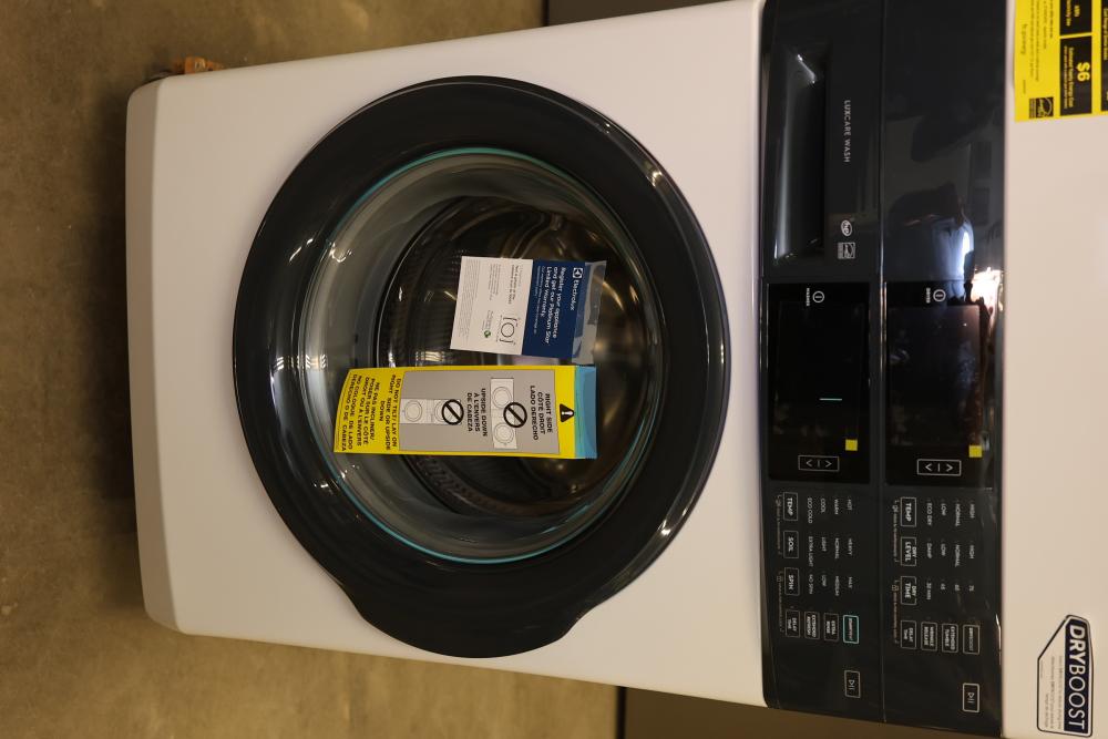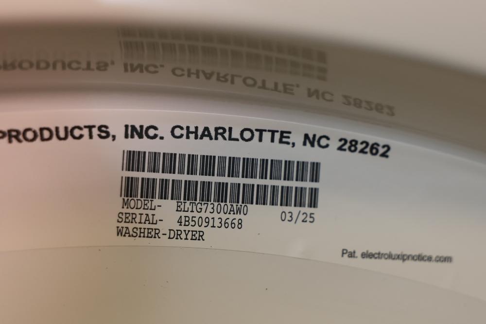 Electrolux Front Load Washer and Dryer Combo with LuxCare Wash provides energy-efficient and thorough cleaning. Includes a user-friendly control panel, customizable settings, and durable drum interiors. The washer features multiple wash cycles and soil levels, and the dryer has various heat settings. Model ELTG7300AW0. Serial number 4B50913668. Dryer does not function. Cannot test washer. 76.250"H x 27"W x 32"D. Pickup only.