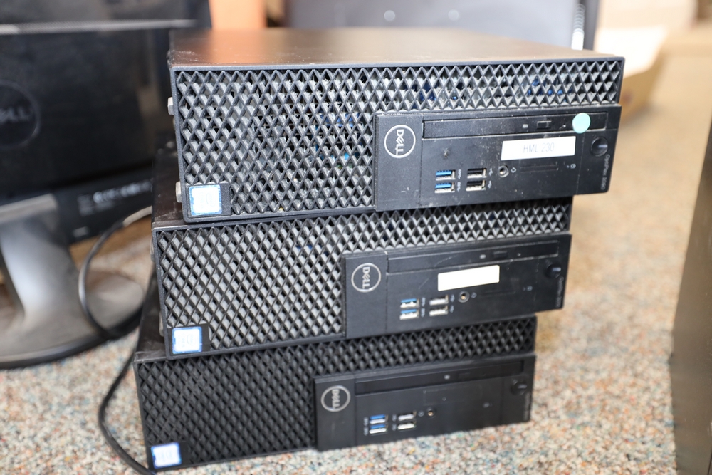 Office electronics including (8) Dell Optiplex Computers (no hard drive), SN: 28171768935, 28171628967, 28414247546, 28163230887, 38322852086, 33411271034, 29128242566; (3) Computer Monitors, various keyboards. Operated when removed from service.