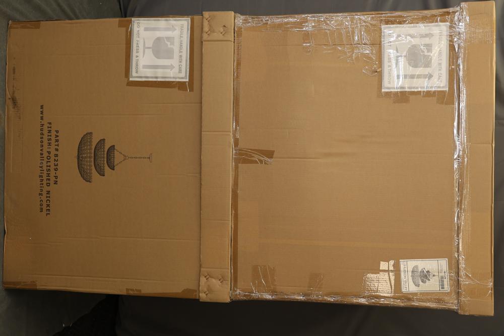 Items include Hudson Valley Lighting Polished Nickel Chandelier; Hudson Valley Pendant Light; American Craftsman 30 x 54 Double-Hung Vinyl Window; Hudson Valley Lighting Smoke Glass Panels; Style Selections Seacrest Dining Table; Nalle Energy Saving Ventilation Fan; Allen + Roth Surface Mount Framed Medicine Cabinet; Industrial-Grade Wall-Mounted Outdoor Light Fixture; Electric Shoe Polisher; Orbit B-hyve Smart WiFi Hose Faucet Timer; Hudson Valley SE-L125 Drum Lamp Shades; Kichler 15211-VGT Landscape Lighting Fixture; Moen GXP33C Garbage Disposal; Style Selections Log Rack; Stainless Steel Sink Basin; Cosmo 30-Inch Under Cabinet Range Hood; Sunlite LED Decorative Ceiling Fixture & more. Items are located in Pleasant Valley, NY.