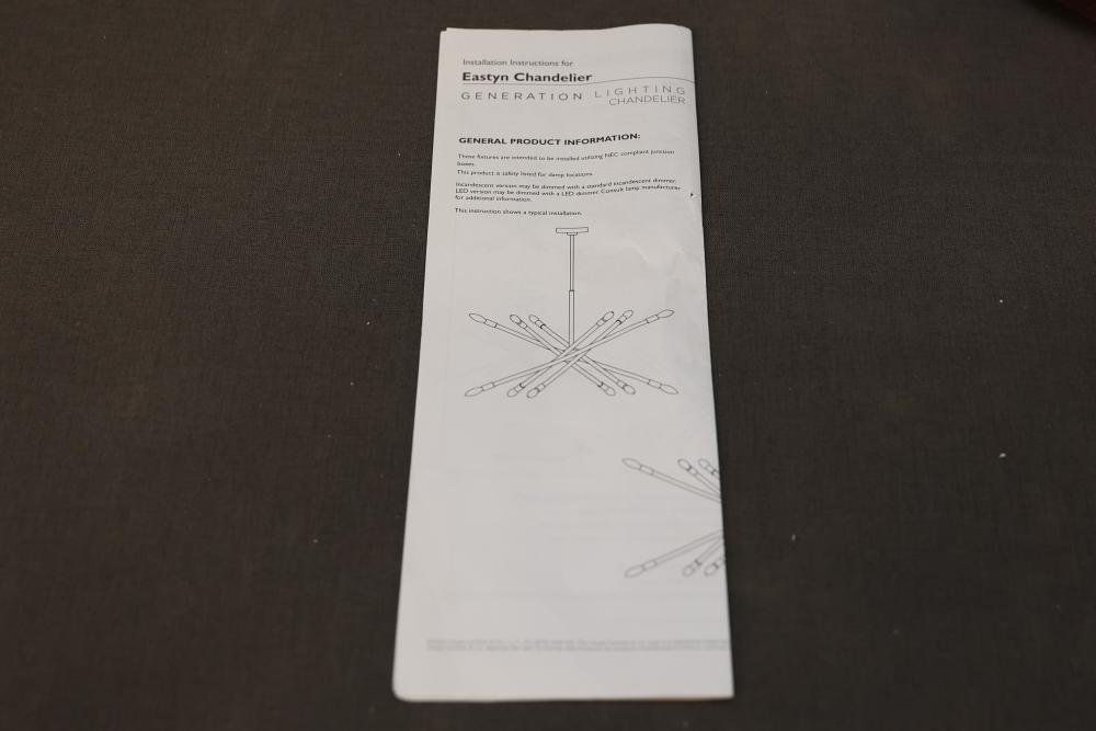 Generation Lighting CC16712MBK Medium Chandelier. Includes components for assembly, wiring, and installation as indicated in the product manual. Designed for use with 12 Candelabra Torpedo 60W bulbs. Packaged in original box with instructions. Pickup only.