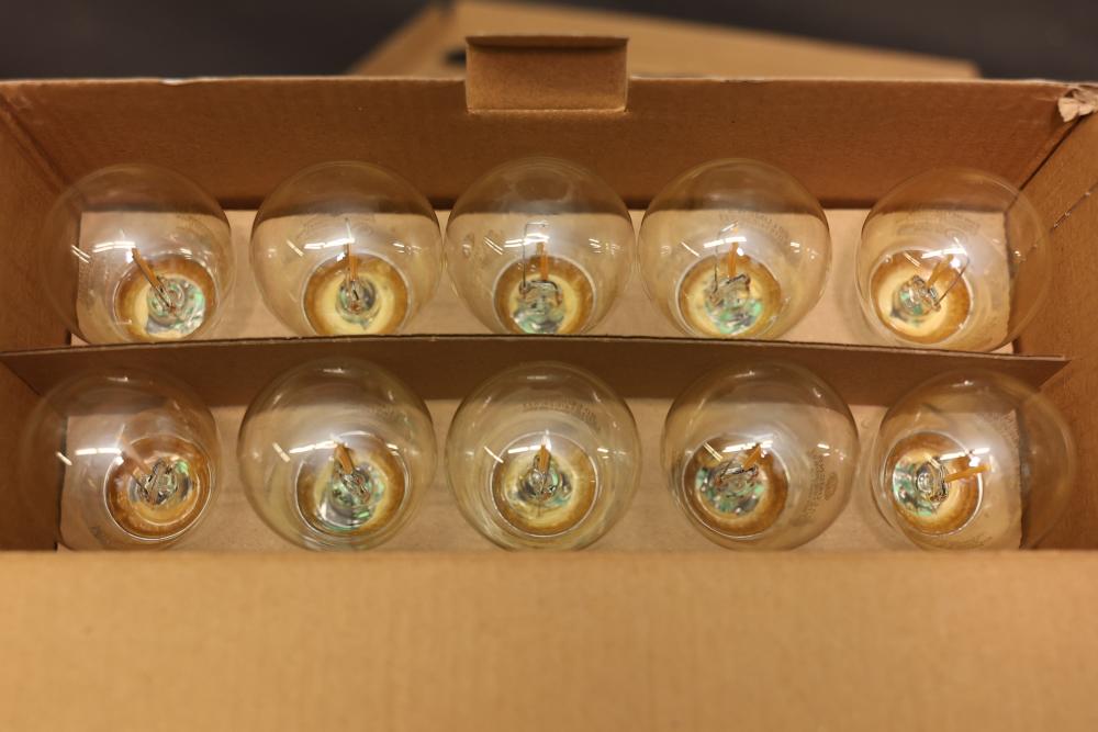 GE LED String Light Replacement Bulbs, Soft White, 10-Pack (3 Boxes). Includes a total of 30 bulbs rated at 1 watt each, emitting 60 lumens per bulb and a light temperature of 2700K. Designed for outdoor use with an estimated lifespan of 13.7 years and energy-efficient operation costing approximately $0.12 annually per bulb (based on 3 hours/day usage). Pickup only.