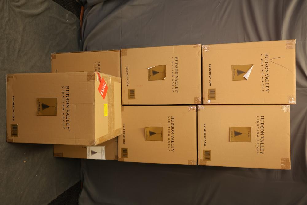 Items include Hudson Valley Lighting Polished Nickel Chandelier; Hudson Valley Pendant Light; American Craftsman 30 x 54 Double-Hung Vinyl Window; Hudson Valley Lighting Smoke Glass Panels; Style Selections Seacrest Dining Table; Nalle Energy Saving Ventilation Fan; Allen + Roth Surface Mount Framed Medicine Cabinet; Industrial-Grade Wall-Mounted Outdoor Light Fixture; Electric Shoe Polisher; Orbit B-hyve Smart WiFi Hose Faucet Timer; Hudson Valley SE-L125 Drum Lamp Shades; Kichler 15211-VGT Landscape Lighting Fixture; Moen GXP33C Garbage Disposal; Style Selections Log Rack; Stainless Steel Sink Basin; Cosmo 30-Inch Under Cabinet Range Hood; Sunlite LED Decorative Ceiling Fixture & more. Items are located in Pleasant Valley, NY.