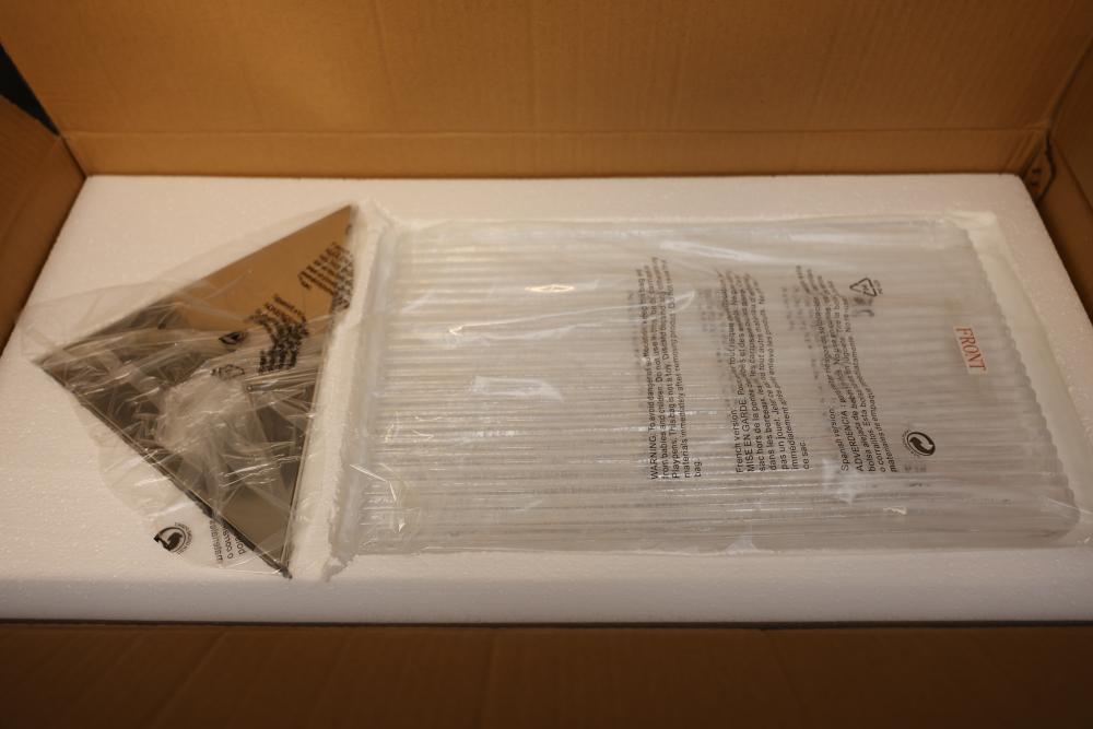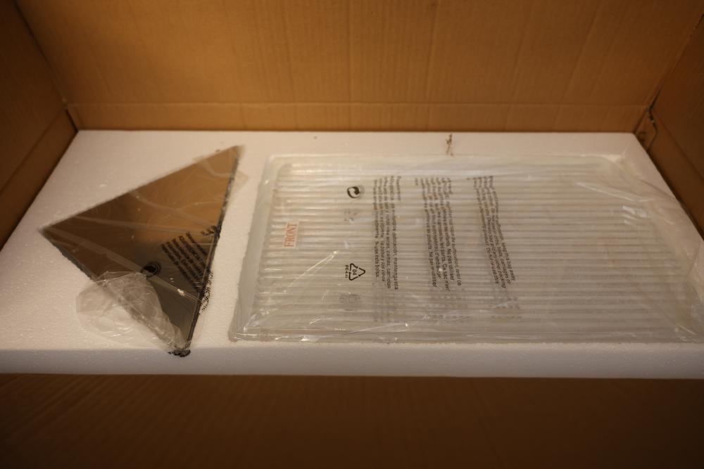 Hudson Valley 4923-PN Wall Sconce in Polished Nickel. The sconce features a modern design, including a triangular polished nickel component and a grooved glass design. Includes original packaging, hardware, and accessories as pictured. Pickup only.