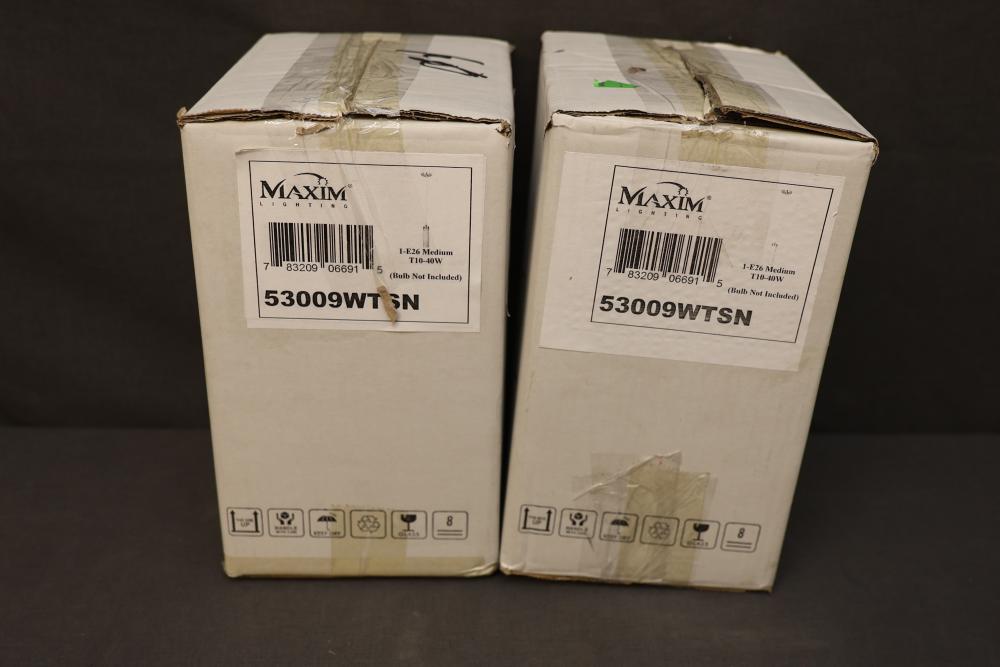 Maxim Lighting 53009WTSN E26 Medium Base Wall Fixtures. Includes two wall-mounted light fixtures compatible with a T10 40W bulb (bulb not included). Items come in original packaging with labels. Suitable for medium E26 bases. Pickup only.