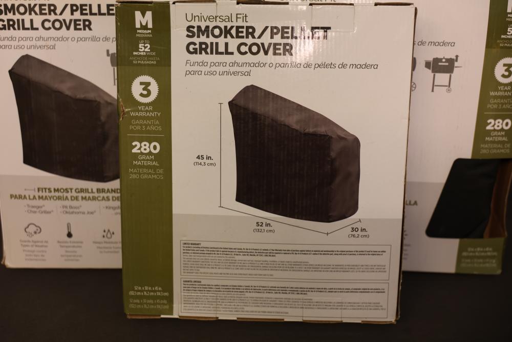 Universal Fit Smoker/Pellet Grill Covers. Includes grill covers designed to fit grills up to 52 inches wide, 30 inches deep, and 45 inches tall. Water-resistant material provides protection against outdoor elements. Pickup only.