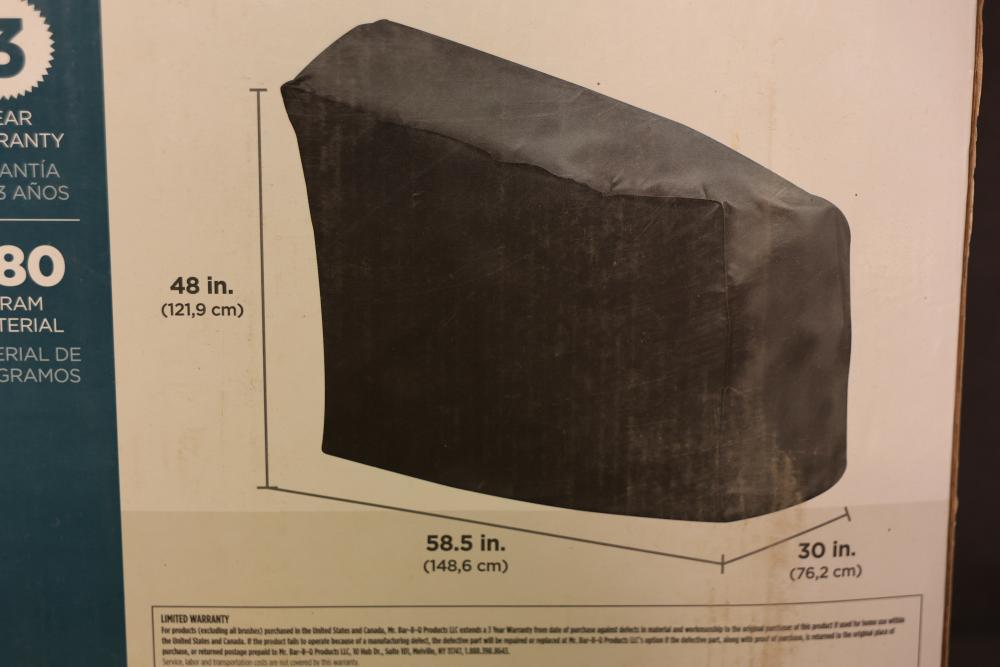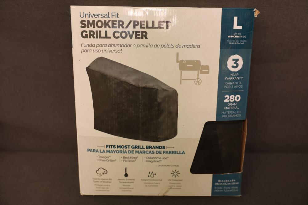 Universal Fit Smoker/Pellet Grill Cover Size L. Designed to fit most grill brands with dimensions of 58.5 inches by 30 inches by 48 inches. Crafted for durable protection against the weather. Pickup only.