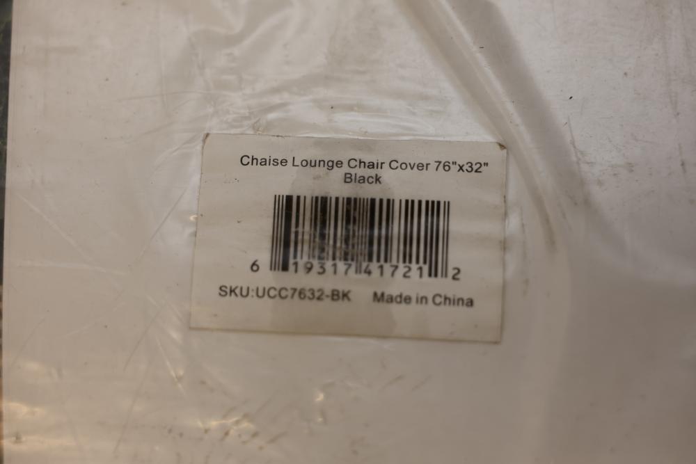 Chaise Lounge Chair Cover 76x32 Black. Made for outdoor use, this cover protects your chaise lounge chairs from weather conditions. The item comes in its original packaging and features a black design. Pickup only.