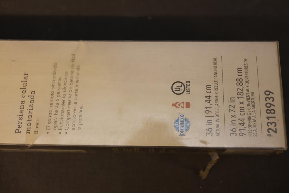 Allen + Roth Motorized Cellular Shade, 36 x 72 Inches, White. Features a paired remote control for operation of up to 6 shades, quiet motorized operation, and an easy battery compartment for replacement convenience. Pickup only.