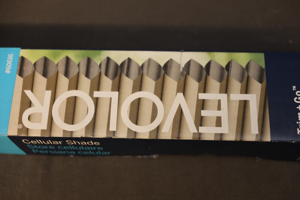 Levolor Trim+Go Sand Cellular Shades 48x72 Inch Set of 2. These room-darkening shades feature a cellular design, measuring 48 inches in width and 72 inches in height, with a trim width of up to 36 inches. Designed for light control and energy efficiency. Pickup only.