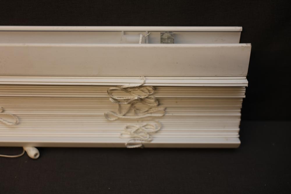 Cordless Cellular Shade with Mounting Hardware. Includes components and instruction manual for assembly. Features a durable design with pull cords and brackets. Pickup only.