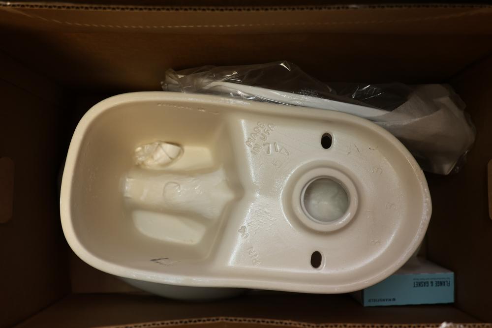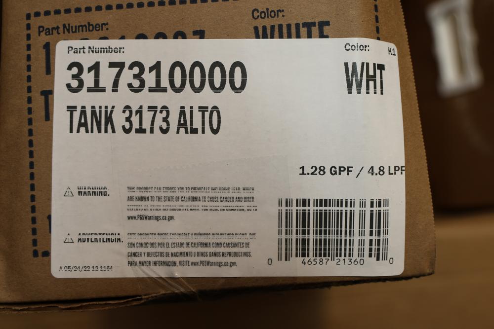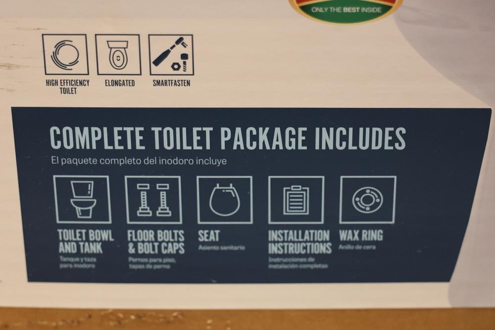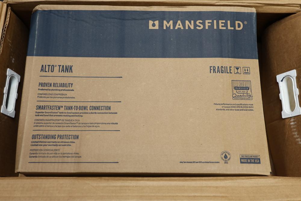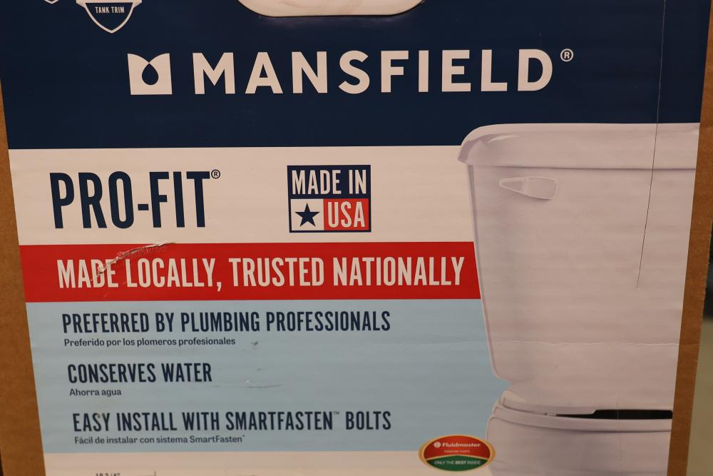 Mansfield Pro-Fit and Alto Tank toilet packages including all necessary components for installation. Items include toilet bowls, tanks, floor bolts, bolt caps, seats, wax rings, and installation instructions. Units are designed for high efficiency at 1.28 GPF / 4.8 LPF with SmartFasten tank-to-bowl connection. Part numbers include L51350017 and 317310000. Pickup only.