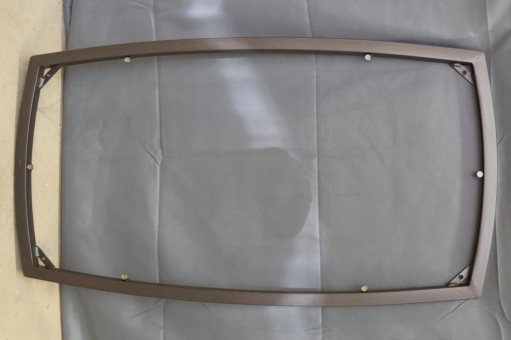 Valleydale Coffee Table with Glass Top and Metal Frame Components. Includes a glass top, metal frame with hardware, and packaged assembly components. The unit is in original packaging. Pickup only.