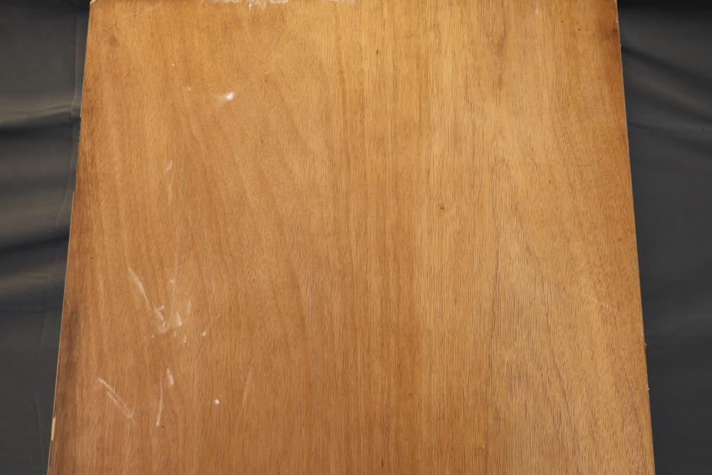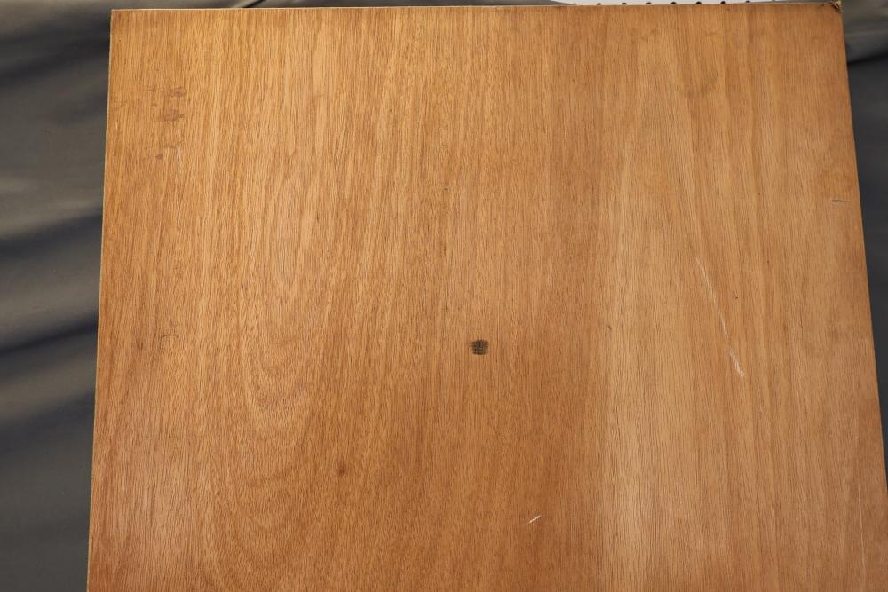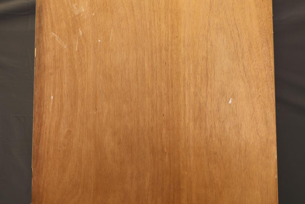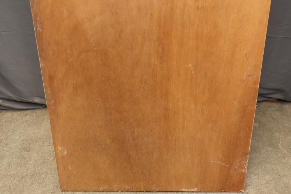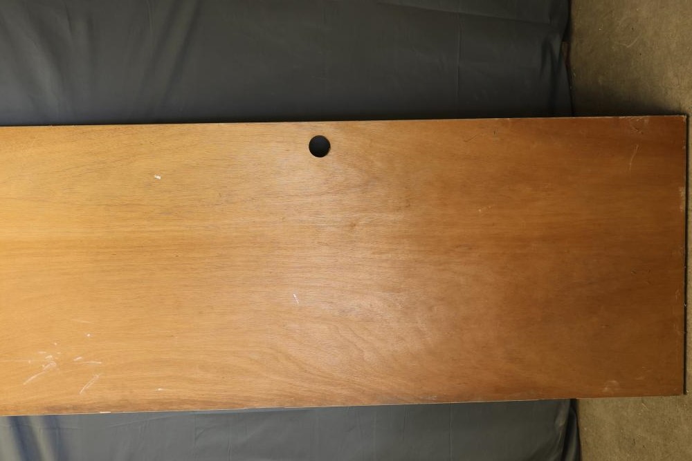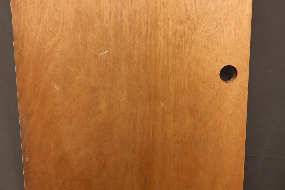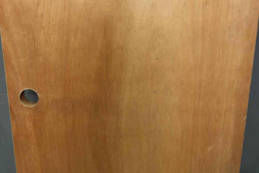 Solid Wood Interior Door with Pre-Drilled Handle Hole. Features a smooth wooden finish on both sides and a handle hole pre-drilled on one side. Presents minor wear including marks and surface scratches. Pickup only.