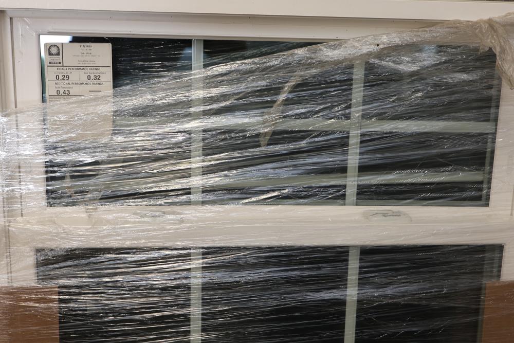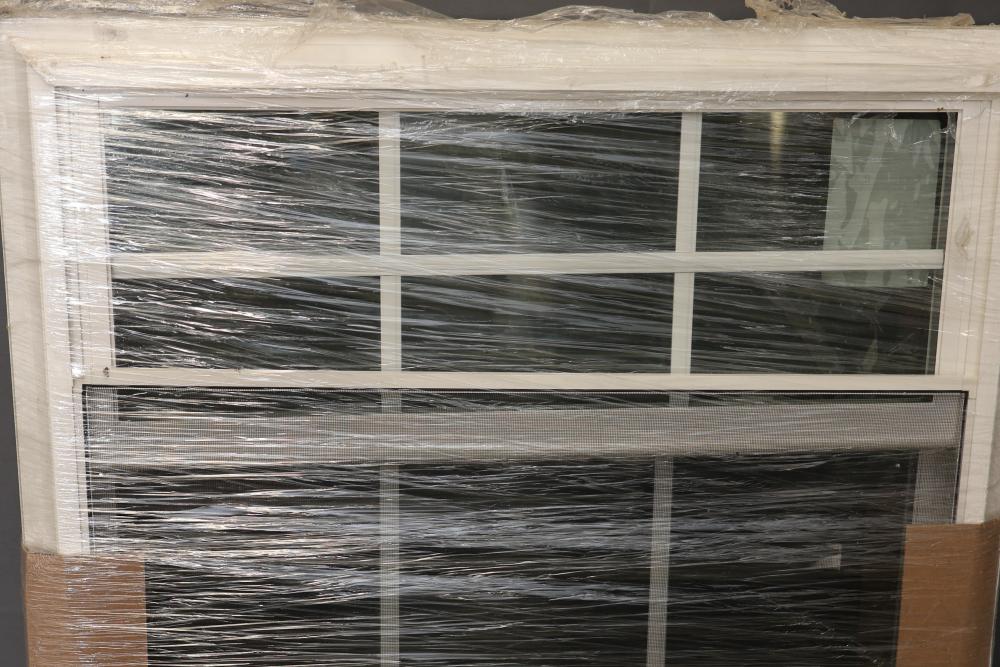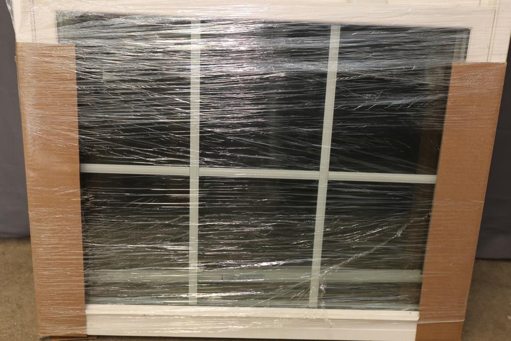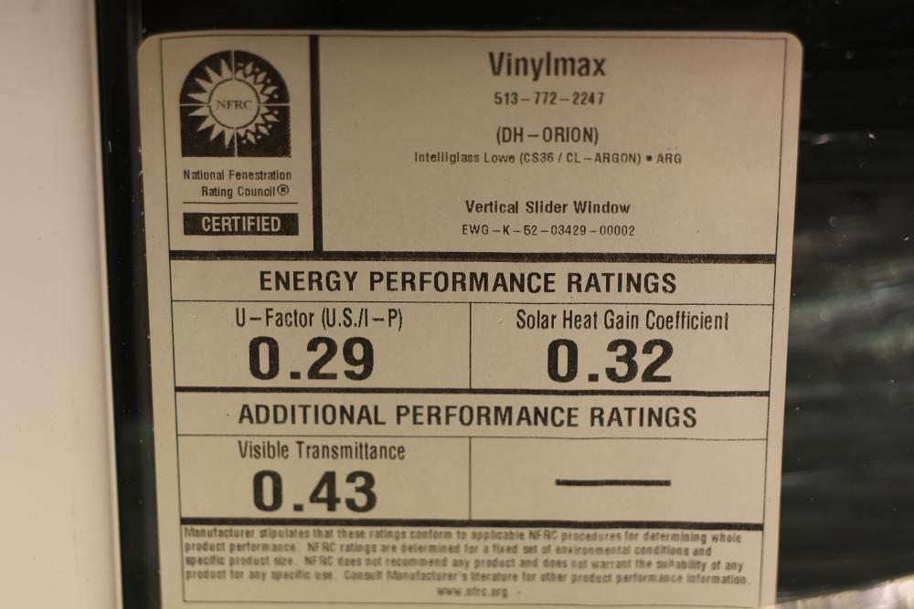 Vinylmax vertical slider window with grids. 36" by 42". The window has energy performance ratings, including a U-factor of 0.29 and a solar heat gain coefficient of 0.32. The visible transmittance is 0.43. Pickup only.