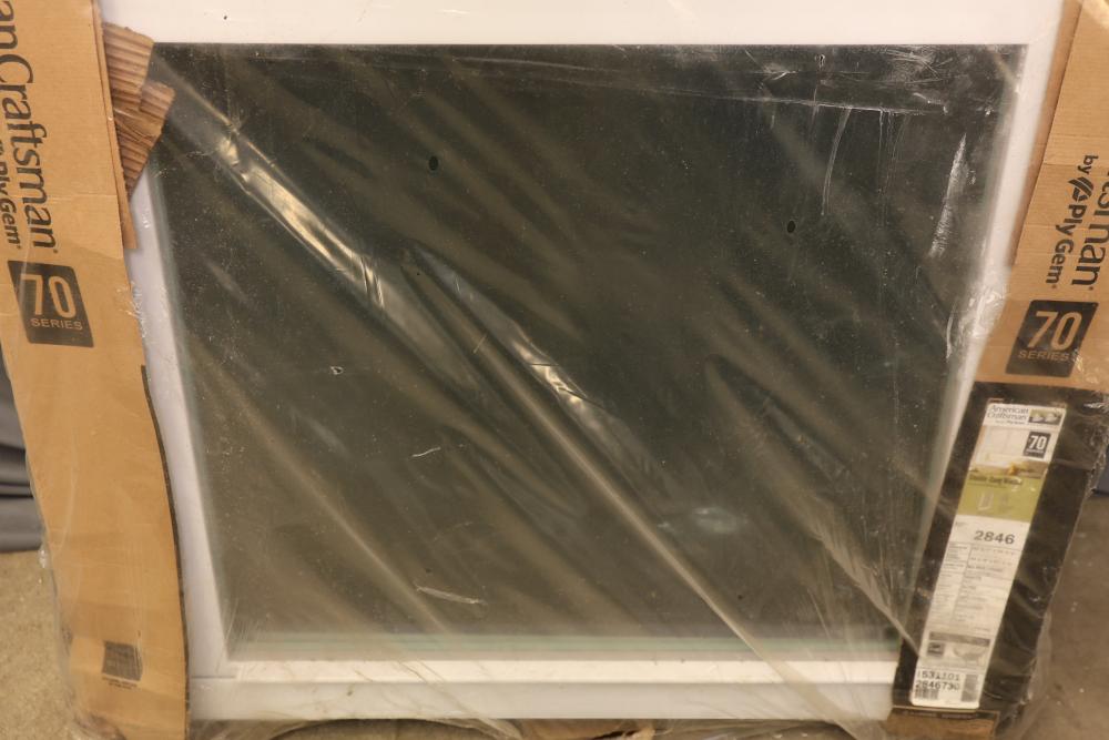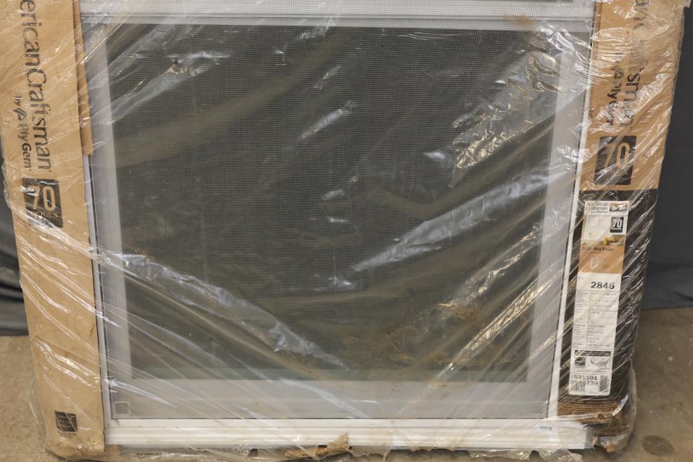 American Craftsman 70 Series Double-Hung Vinyl Window, 33 3/4 x 56 3/4. Features Low-E glass with Argon fill, white frame color, hardware and insect screen included, grilles not included. Rough opening dimensions are 34 1/4 x 57 1/4. Includes lifetime limited warranty. Pickup only.