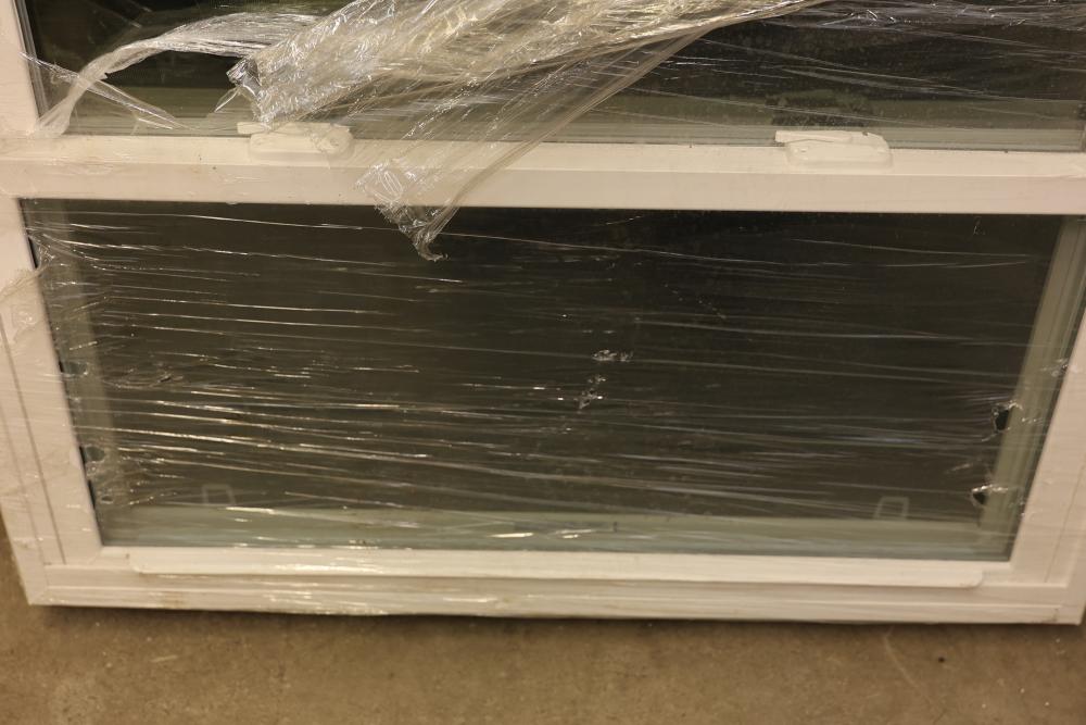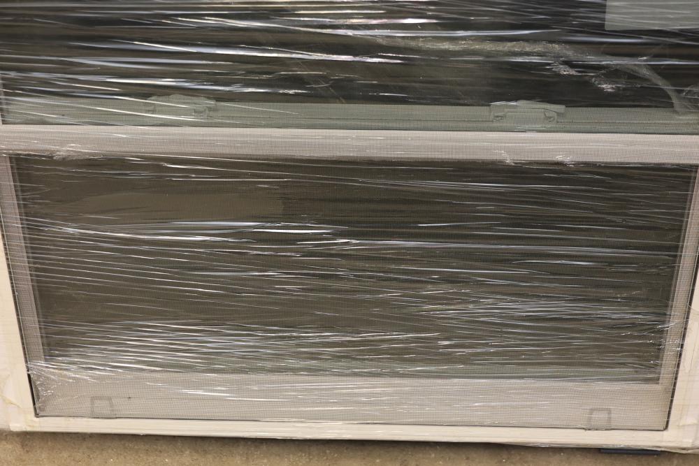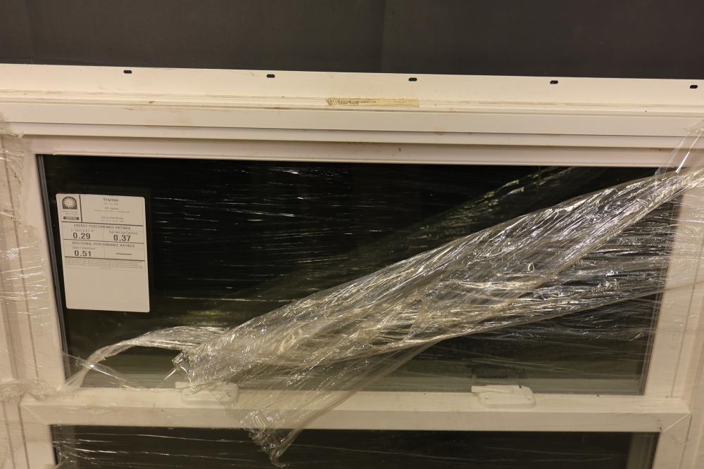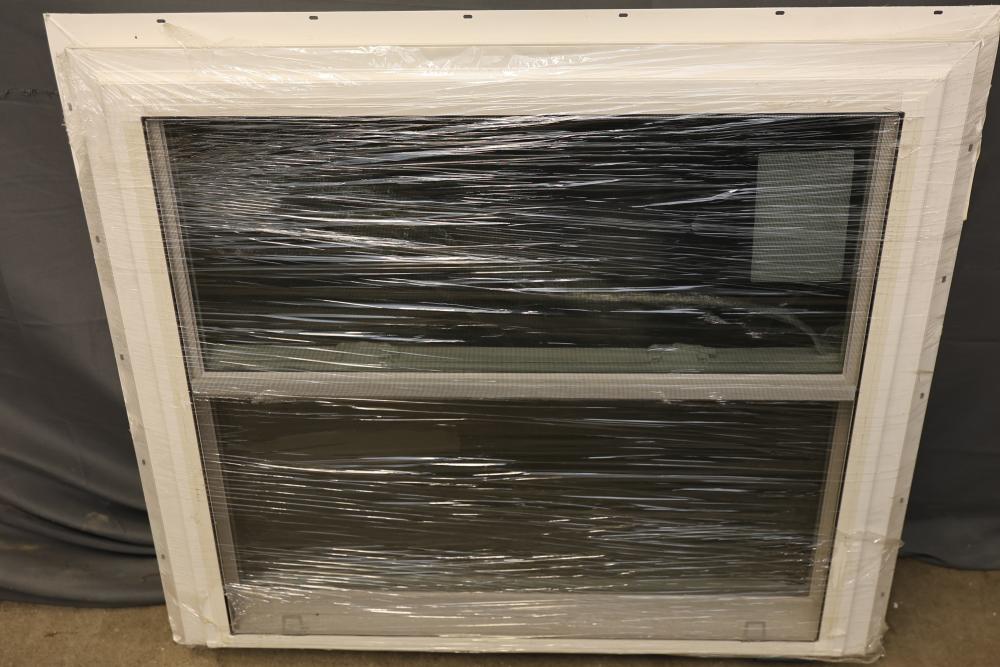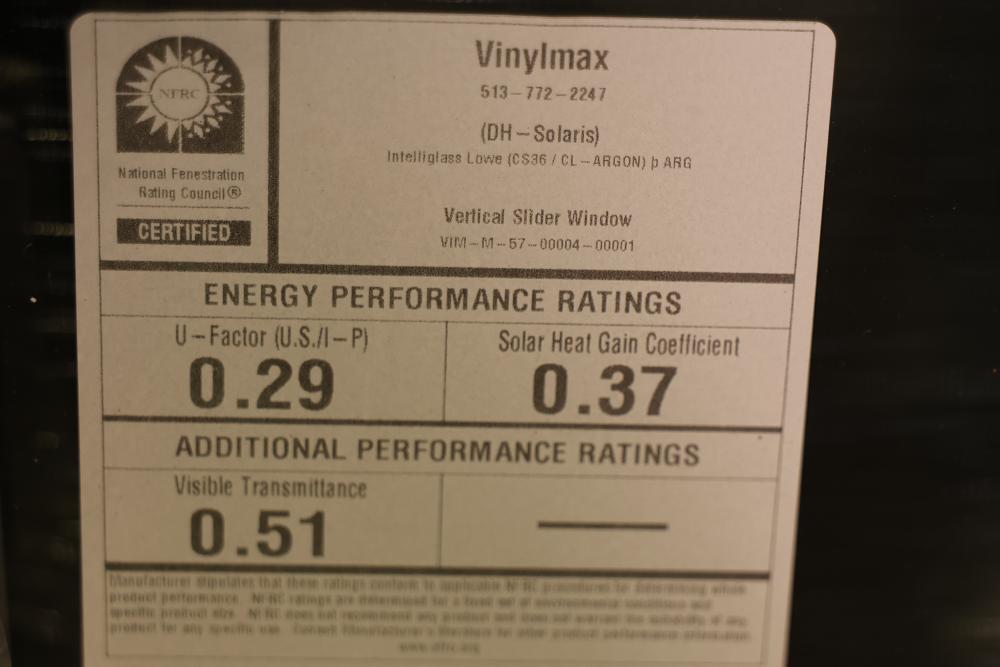 Vinylmax DH-Solaris Vertical Slider Window with Energy Ratings featuring a U-Factor of 0.29, Solar Heat Gain Coefficient of 0.37, and Visible Transmittance of 0.51. 36 x 32 inches. Includes a durable frame and clear protective wrapping. Pickup only.