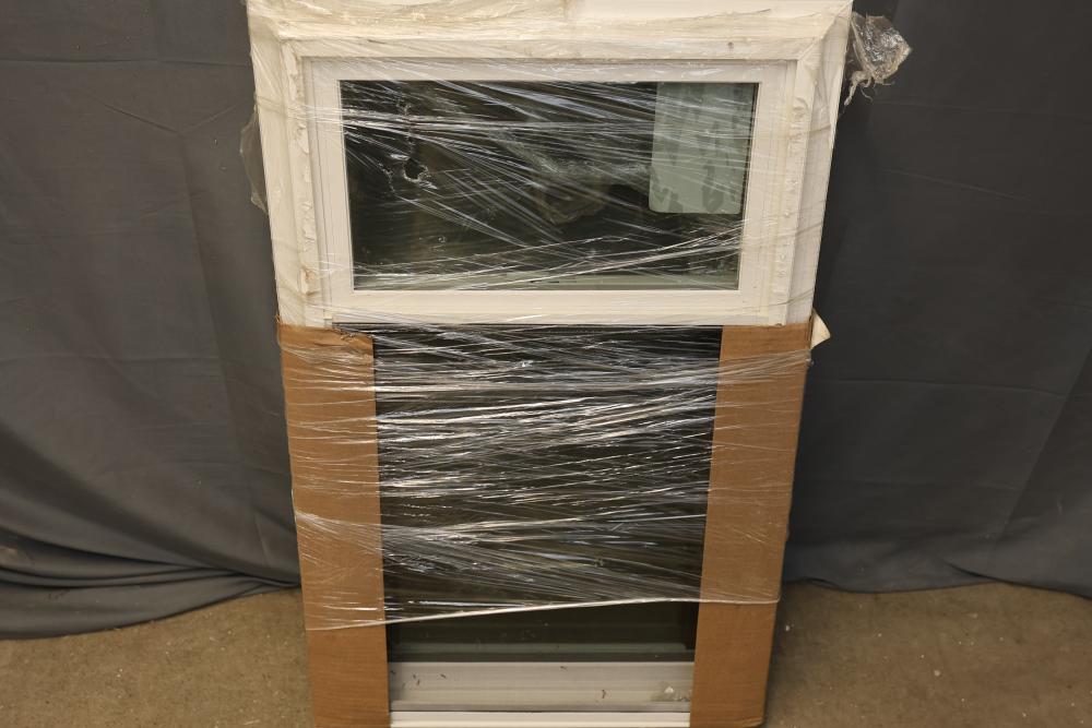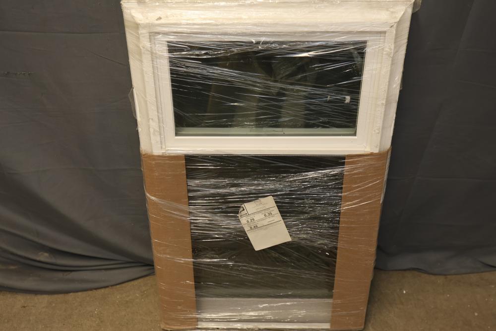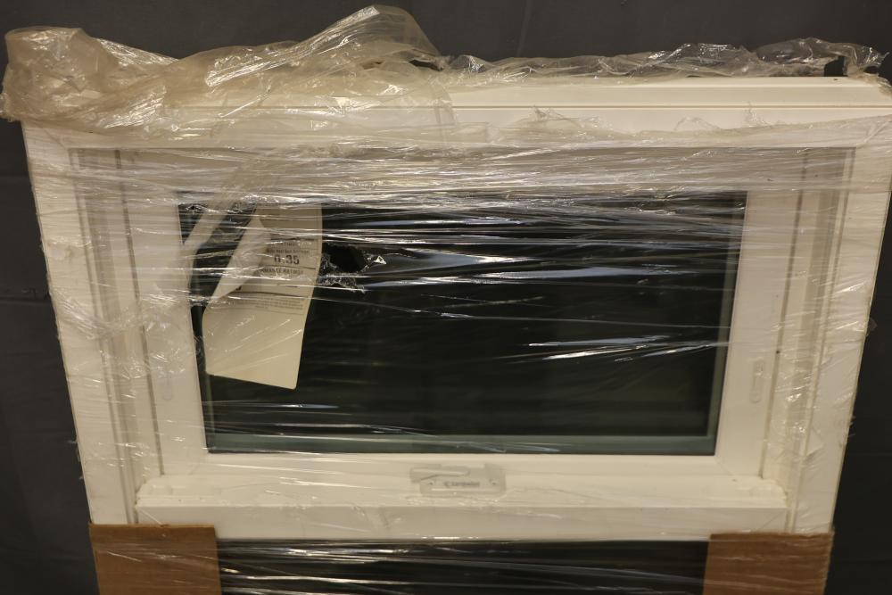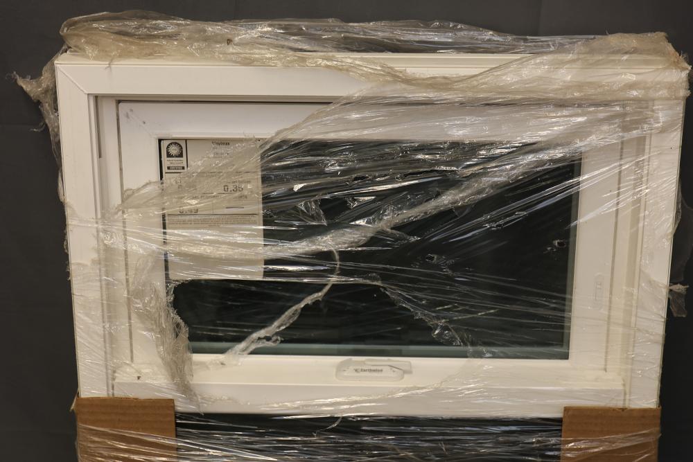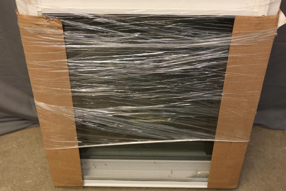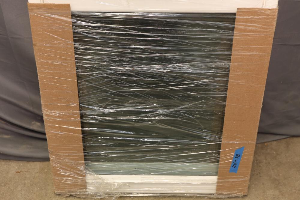 Set of 2 Vinylmax vertical slider windows measuring 24 x 38 inches. Constructed with energy-efficient features, including a U-Factor rating of 0.29 and Solar Heat Gain Coefficient of 0.35, as indicated on the label. The item is wrapped in protective packaging. Pickup only.