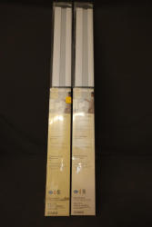 Levolor Trim+Go Cellular Shade in Toffee color, room darkening, measuring 48 x 72 inches with a trim width of 36 inches. Includes Project Source Cordless Vinyl Mini Blind in white, sized for a 23 x 72-inch opening with an actual width of 22.5 inches. Both items are new in original packaging. Pickup only.