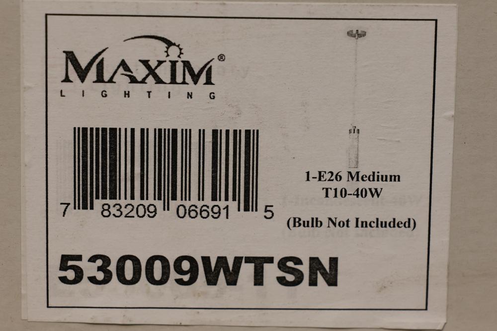 Maxim Lighting 53009WTSN E26 Medium Base Wall Fixtures. Includes two wall-mounted light fixtures compatible with a T10 40W bulb (bulb not included). Items come in original packaging with labels. Suitable for medium E26 bases. Pickup only.