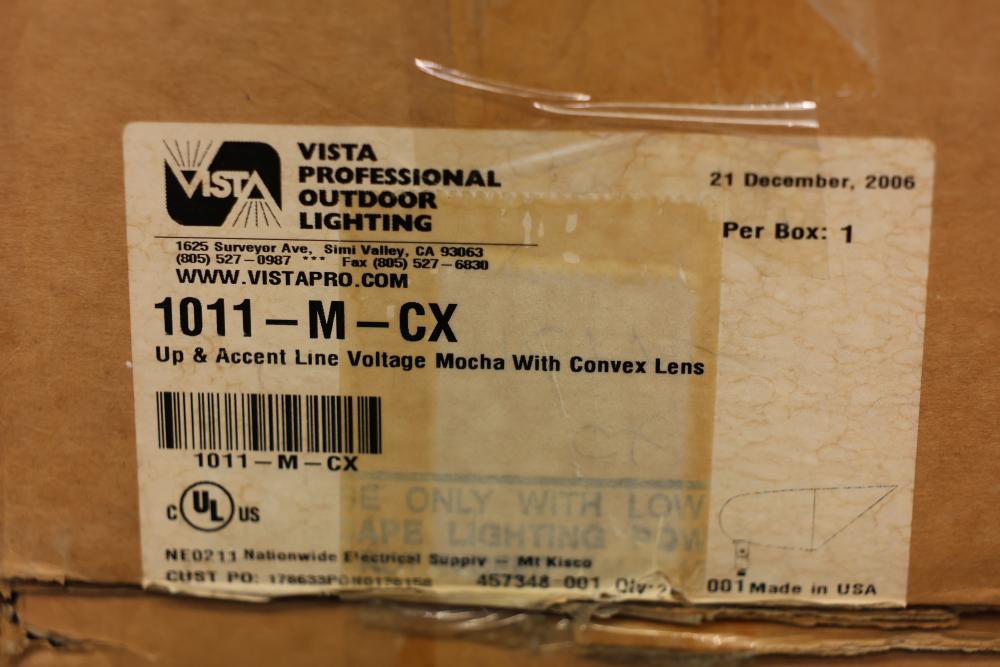 Vista Professional Outdoor Lighting 1011-M-CX mocha lighting fixture with convex lens. Designed for up and accent line voltage applications. The fixture includes mounting hardware and instructions. Pickup only.