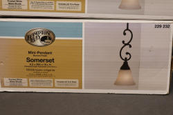 Items include Hudson Valley Lighting Polished Nickel Chandelier; Hudson Valley Pendant Light; American Craftsman 30 x 54 Double-Hung Vinyl Window; Hudson Valley Lighting Smoke Glass Panels; Style Selections Seacrest Dining Table; Nalle Energy Saving Ventilation Fan; Allen + Roth Surface Mount Framed Medicine Cabinet; Industrial-Grade Wall-Mounted Outdoor Light Fixture; Electric Shoe Polisher; Orbit B-hyve Smart WiFi Hose Faucet Timer; Hudson Valley SE-L125 Drum Lamp Shades; Kichler 15211-VGT Landscape Lighting Fixture; Moen GXP33C Garbage Disposal; Style Selections Log Rack; Stainless Steel Sink Basin; Cosmo 30-Inch Under Cabinet Range Hood; Sunlite LED Decorative Ceiling Fixture & more. Items are located in Pleasant Valley, NY.