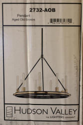 Hudson Valley Lighting Pendant Aged Old Bronze 2732-AOB. Featuring a metal frame and aged old bronze finish. Includes hardware components for assembly. Items are packaged in their original boxes with instructions. The pendant is designed for an elegant lighting solution. Pickup only.