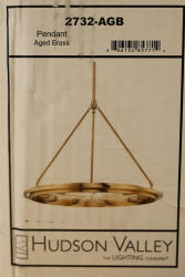 Hudson Valley Pendant Light in Aged Brass 2732-AGB. Includes components for an aged brass finished pendant light with multiple bulb sockets. Comes in original packaging with protective foam inserts to ensure safe transport. Pickup only.