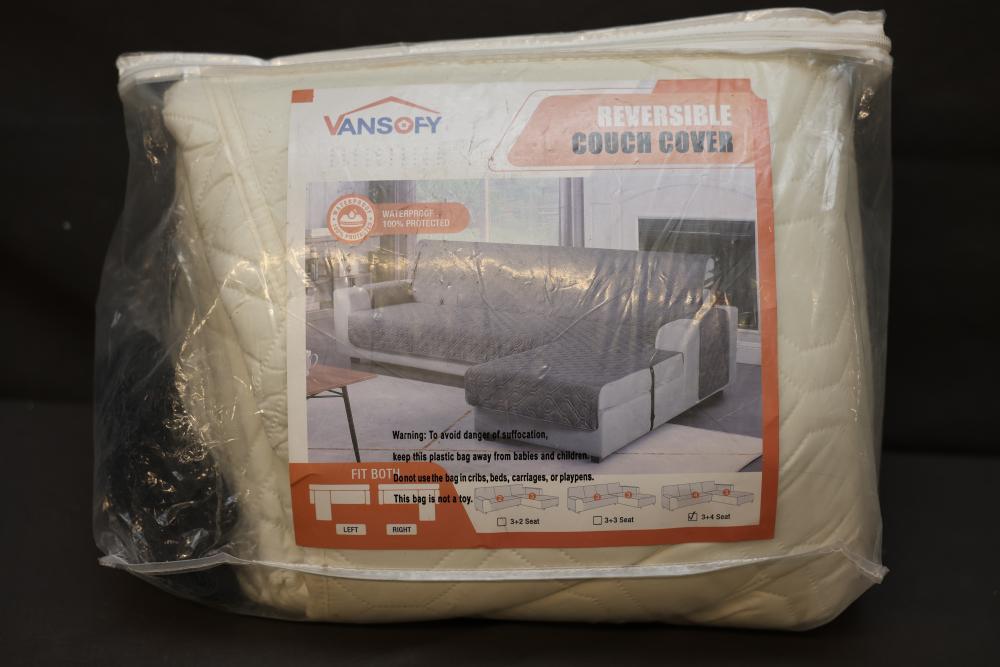 Vansofy Reversible Couch Cover with Quilted Design and Accessories. Includes a waterproof, 100% protected cover for left or right L-shaped couches. Fit sizes from 3-seat to 8-seat configurations. Comes with attachment accessories and instructions. Pickup only.