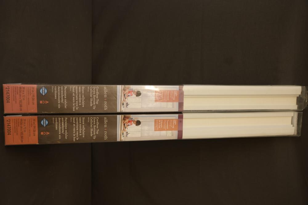 Allen + Roth Cordless Top Down Bottom Up Cellular Shades, 39 x 72 In. These window treatments provide privacy and light control with a durable cellular construction in a white finish. Includes two sets. Pickup only.